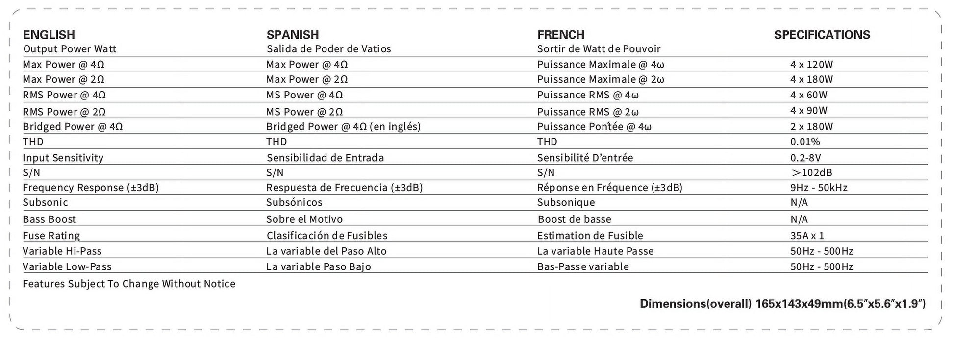 4-Channel Car Audio Amplifier - 720W Max Vehicle Sound Power