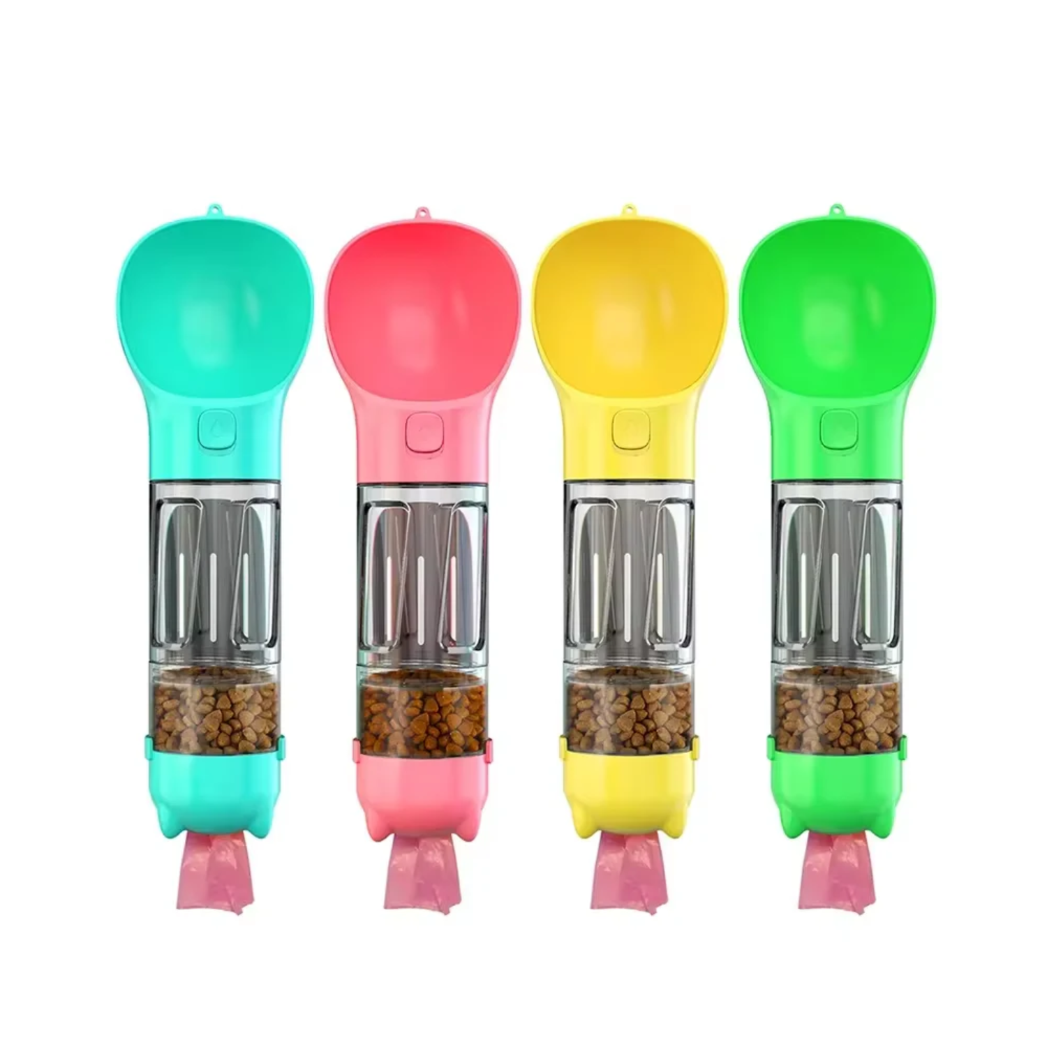 Portable 3‑in‑1 Pet Travel Bottle – Water Dispenser + Food Feeder + Poop Bag Holder, Leakproof & BPA‑Free (Dogs & Cats)