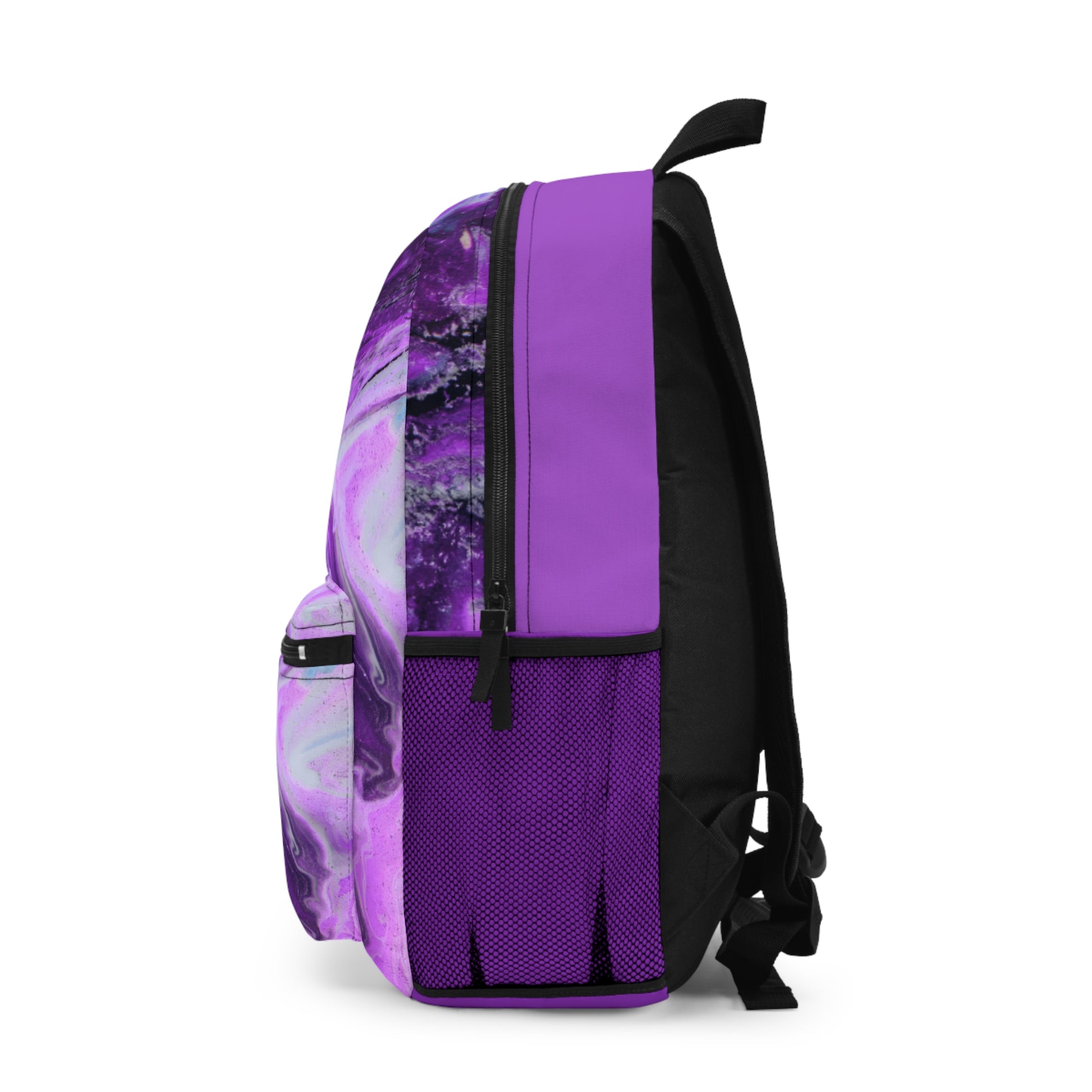 Carry moody energy, stay organized. This backpack features the Midnight Amethyst design—deep violet swirls with smoky lavender marble—perfect for commutes, school days, and weekend runs when you want your bag to feel like a statement. Lightweight but durable, it’s built to move with you.