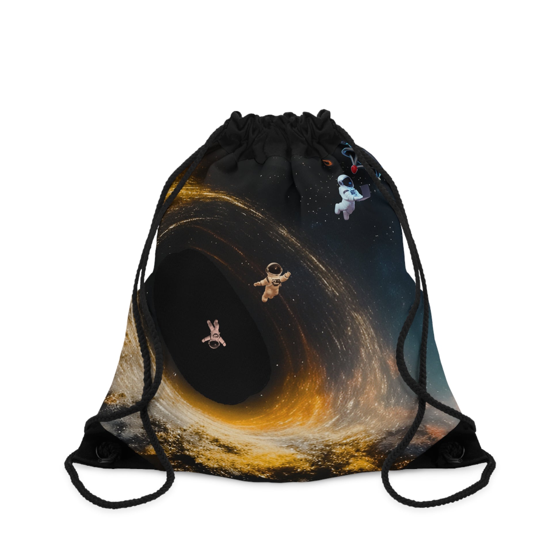 Lightweight, bold, and ready to go. This drawstring bag features the Cosmic Drift design with astronauts and space toys swirling toward a golden vortex—perfect for quick gym runs, beach days, errands, or tossing your daily essentials in one easy grab-and-go bag.