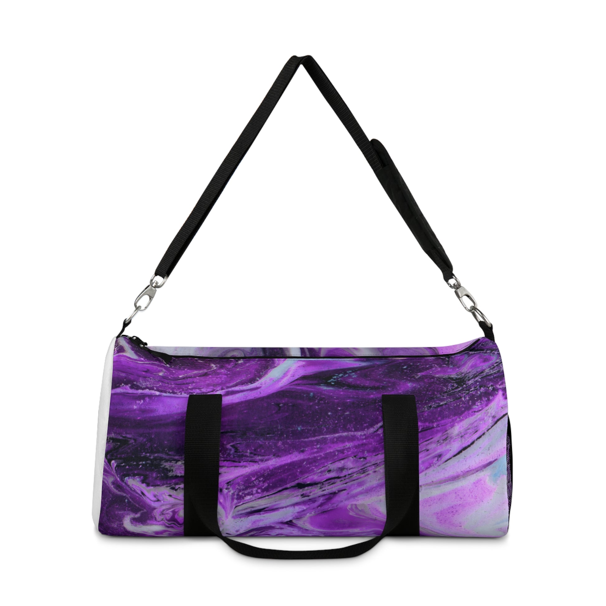Moody, practical, and built to travel. This lightweight duffel features the Midnight Amethyst design—deep violet swirls with smoky lavender marble—perfect for gym runs, weekend trips, or quick getaways when you want your bag to look as good as it performs.