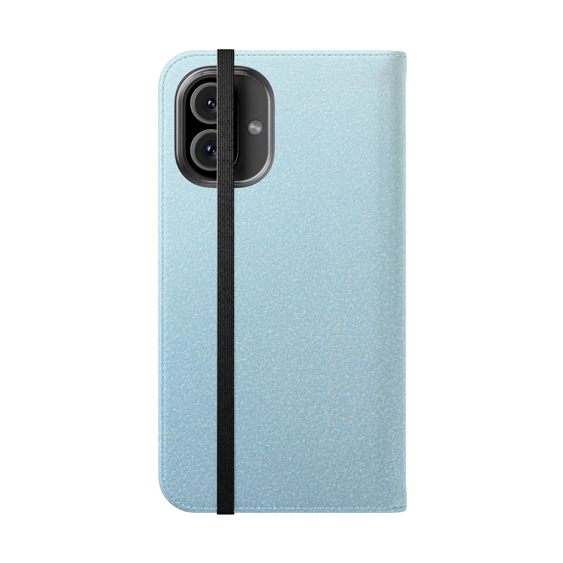 Clean, calm, and built for everyday — the Blue Whisper flip case brings vibrant print-ready faux vegan leather with real function. It protects your phone, props into a stand when you’re watching, and keeps essentials close with stitched card pockets and a secure elastic closure.