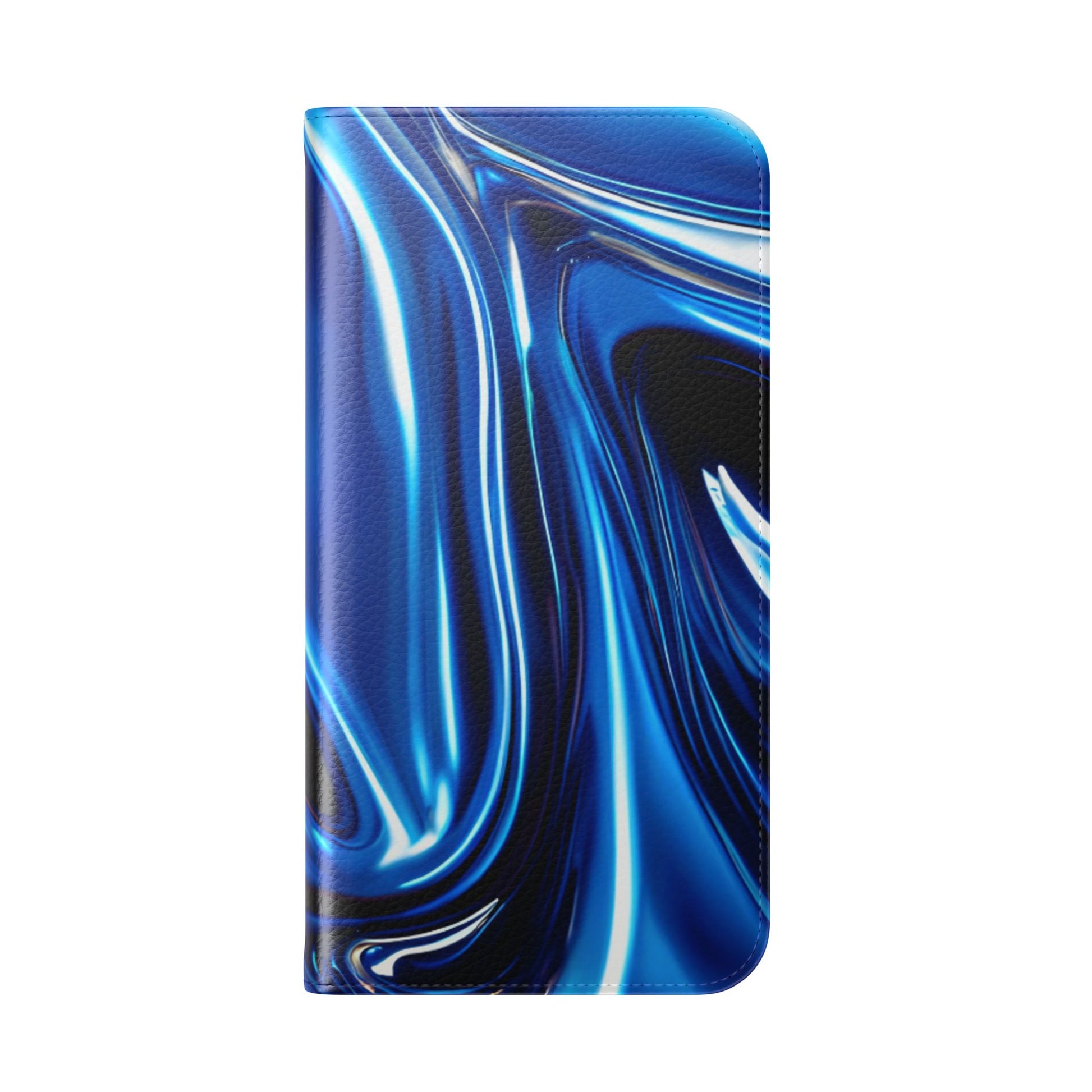 Bold, glossy, and built for everyday — this Midnight Surge flip case brings vibrant print-ready faux vegan leather with real function. It protects your phone, props into a stand when you’re watching, and keeps essentials close with stitched card pockets and a secure elastic closure.