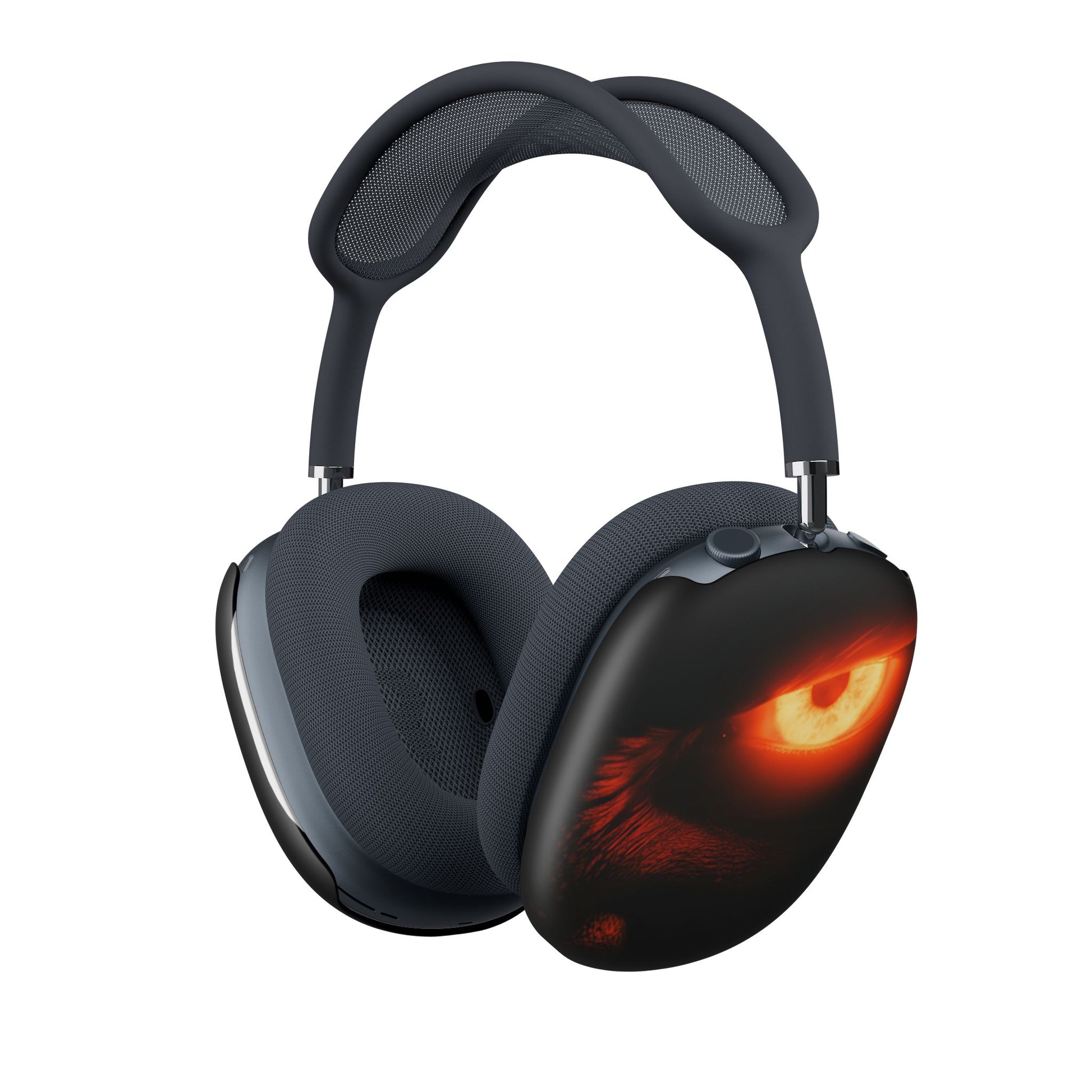 Make your headphones fierce. These glossy or matte ear cup covers feature the Blazing Monster Eyes design with intense, ember-orange eyes—perfect for turning your audio setup into a statement piece. They snap on without bulk, keep your charging functional, and help protect against scratches and daily wear.