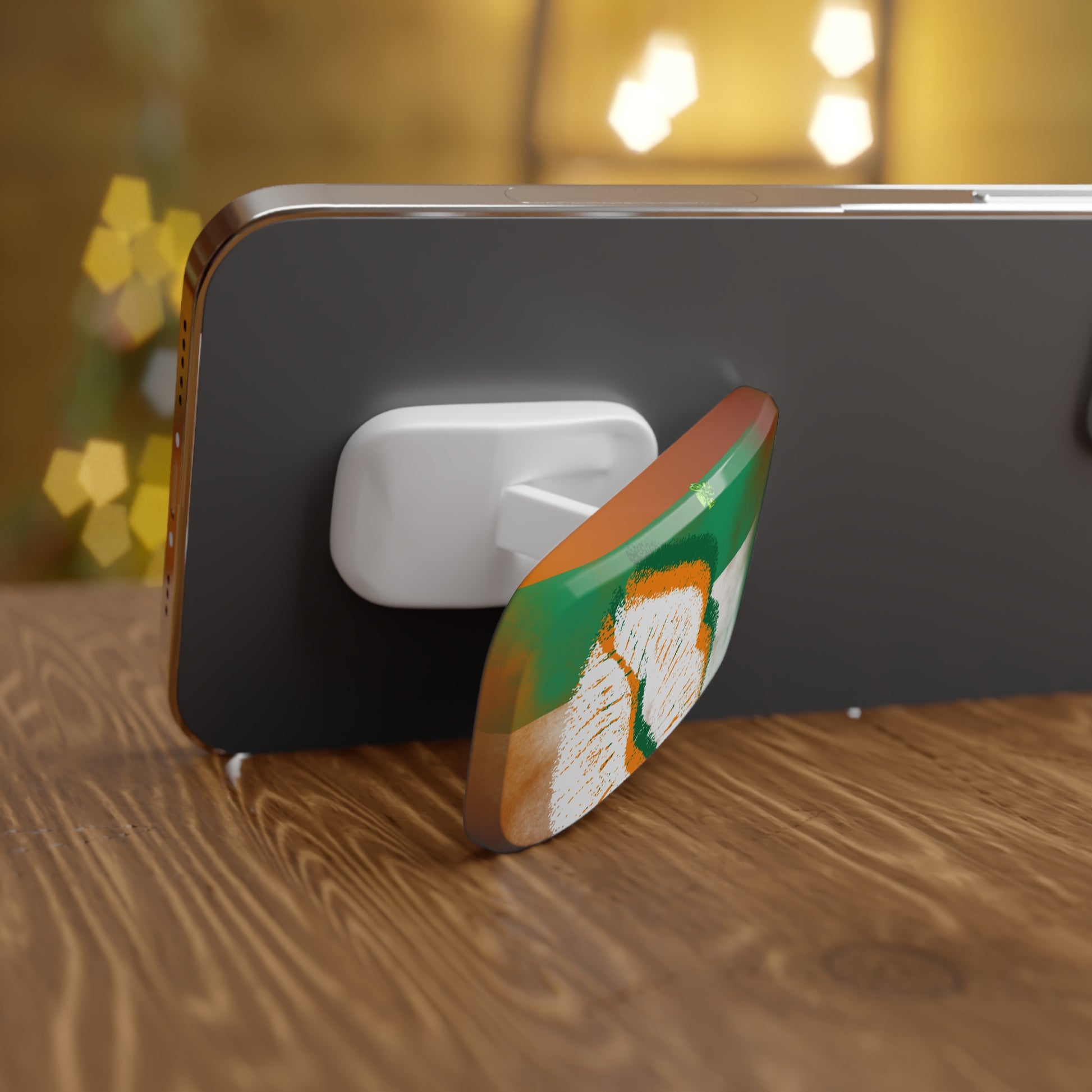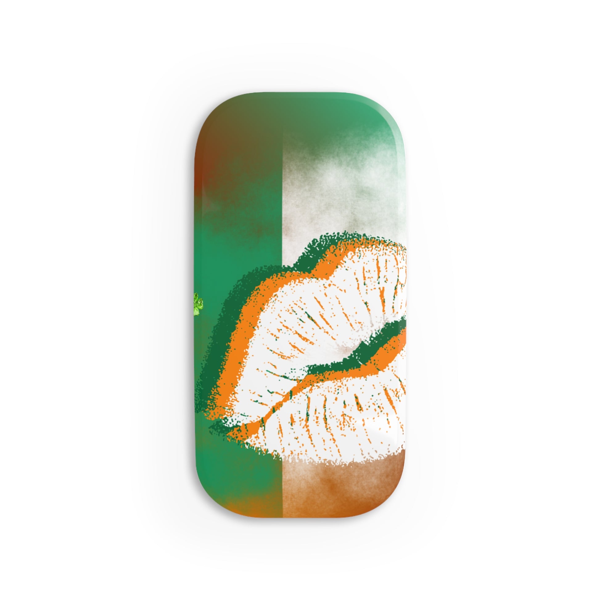 One-handed texting, steadier selfies, and hands-free scrolling — this click-on phone grip makes your phone easier to hold and easier to use. The Irish lip design brings bold St. Patrick’s Day energy with an Irish flag backdrop, distressed lip graphic, and a small shamrock detail, all in a slim oval shape that stays easy to carry.