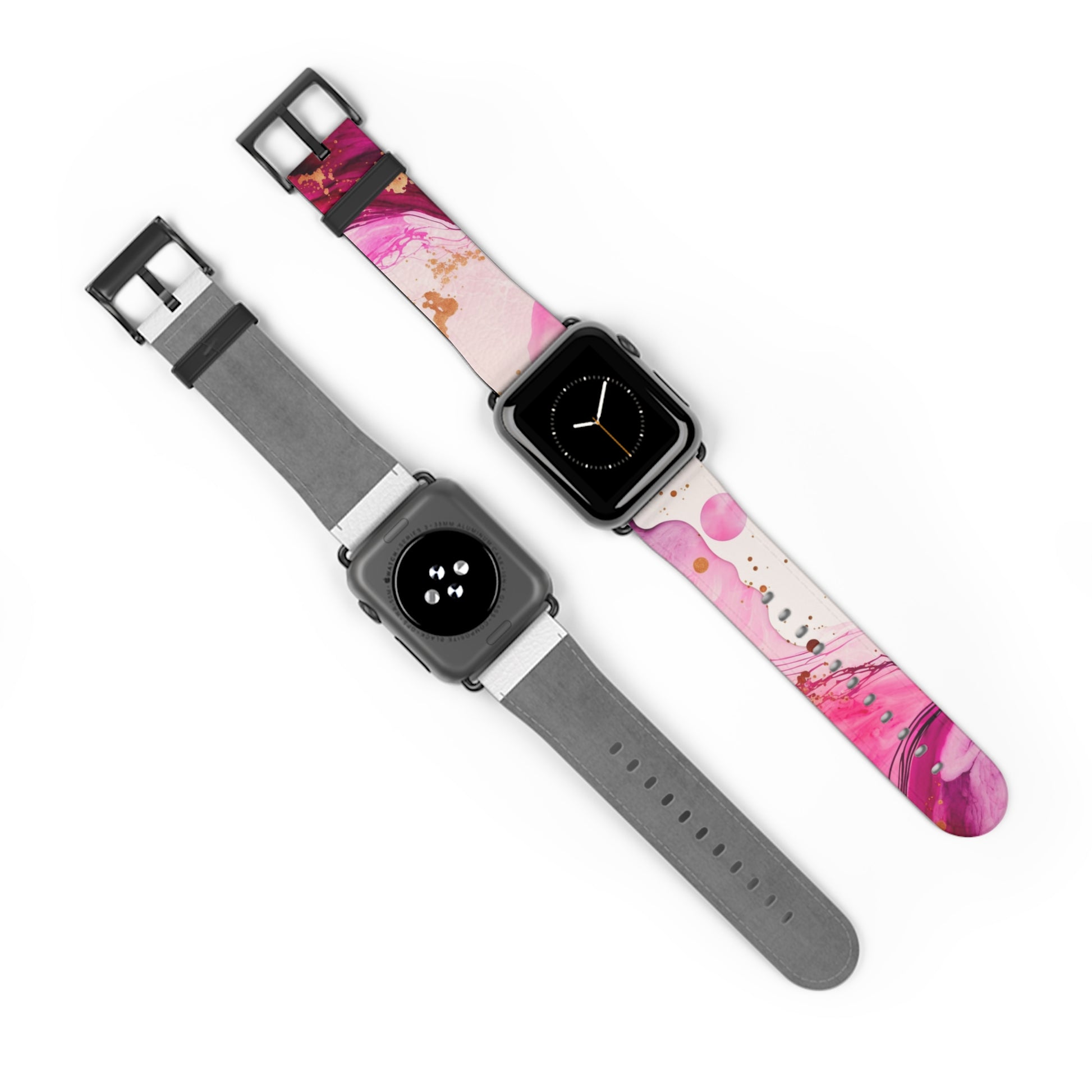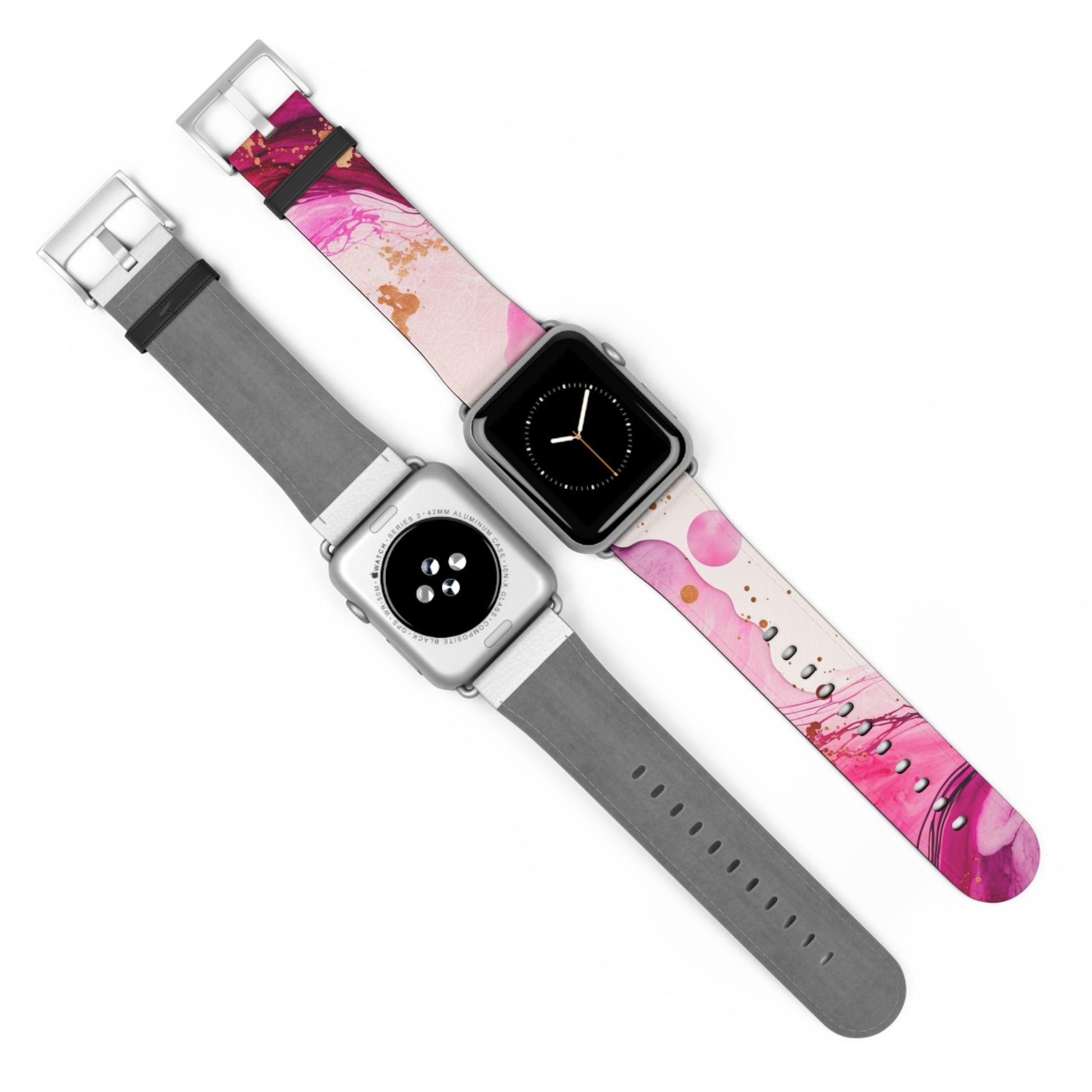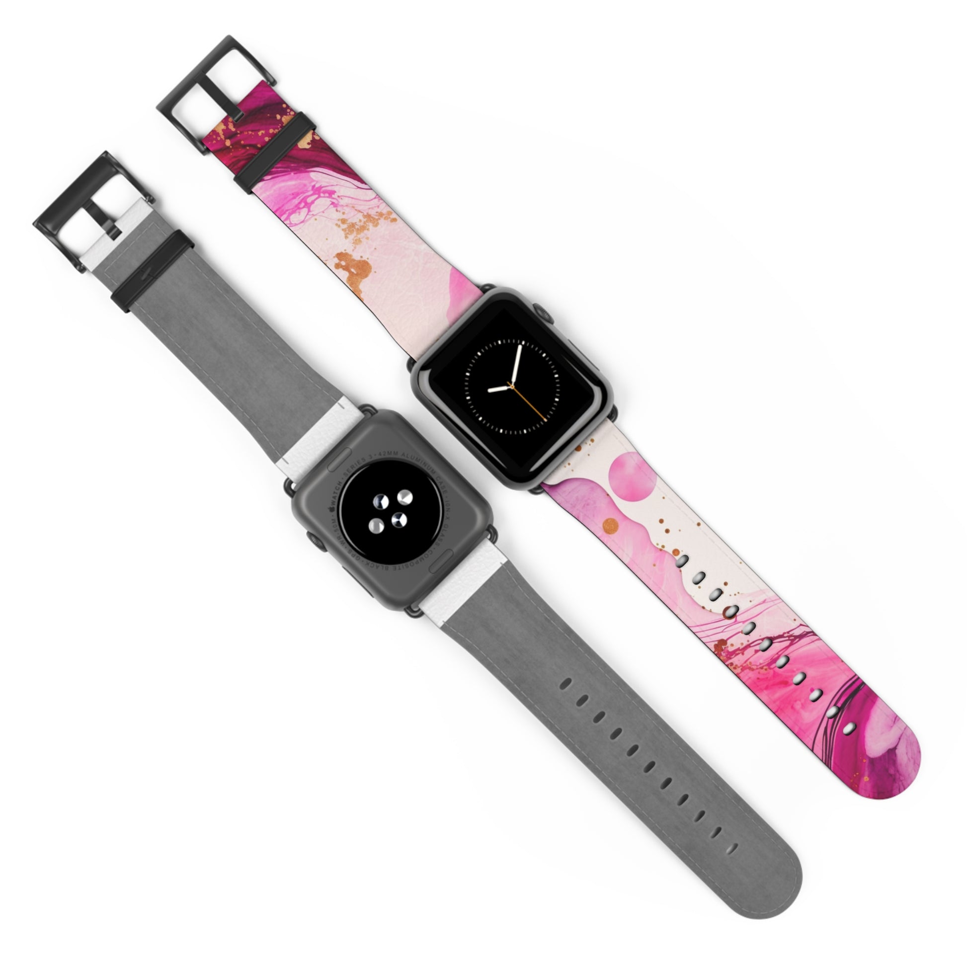 Flirty, bold, and made to stand out. This art-forward watch band features the Blush & Burn design—vibrant pink swirls with warm gold accents—so your everyday tech feels like a statement accessory for nights out, brunch plans, and everything in between.