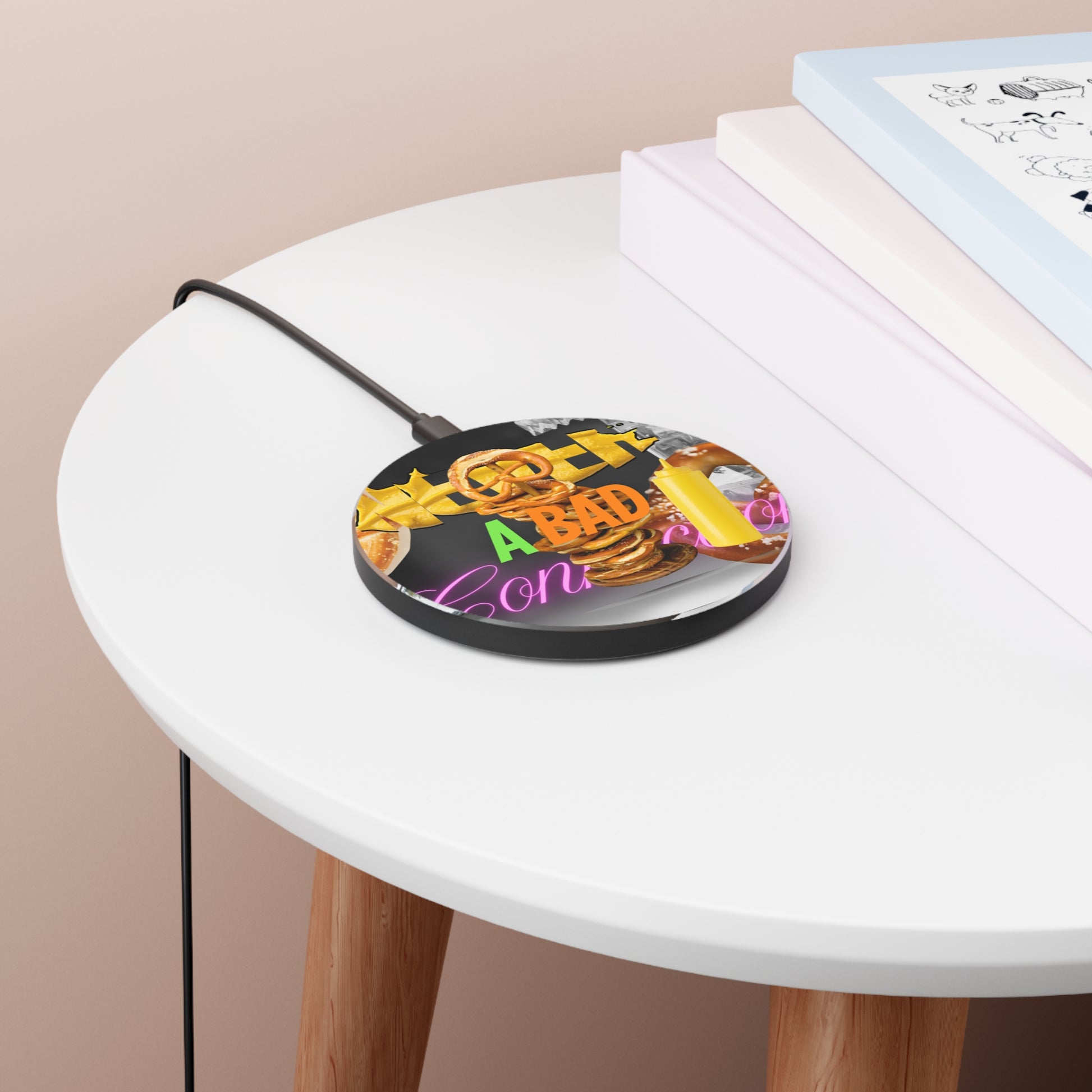 A little late-night diner dream for your desk. This slim wireless charger features the "Never a Bad Connection" pretzel stack with bold neon lettering, stacked pretzels, and mustard drips—turning your charging spot into a small scene that sparks conversation. Just set your phone down and let it power up.