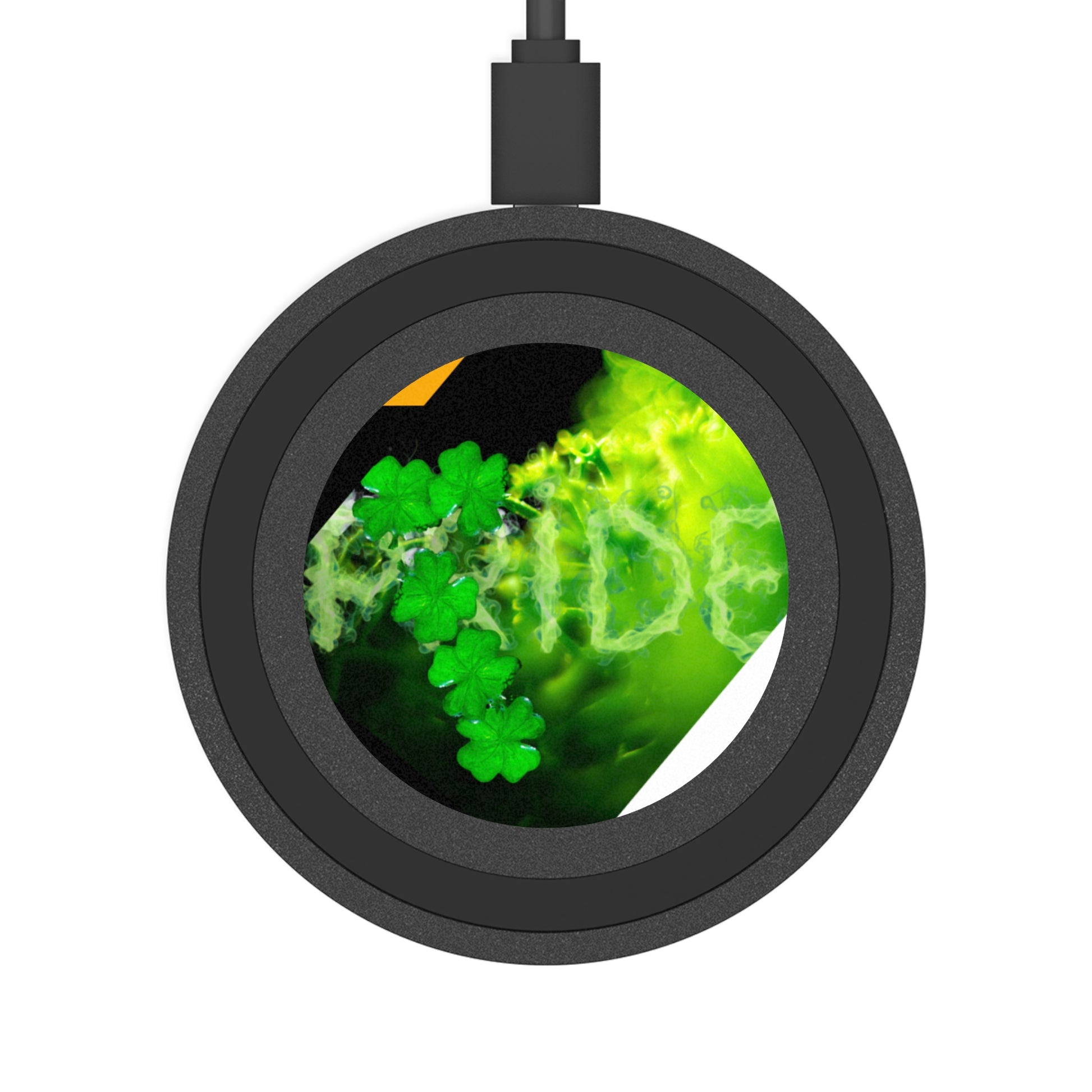 A little lucky energy for your desk. This compact wireless charging pad features the Lucky Clover Smoke design with vivid green color that pops on your nightstand or workspace. Just plug it in, set your phone down, and charge—no cable juggling.