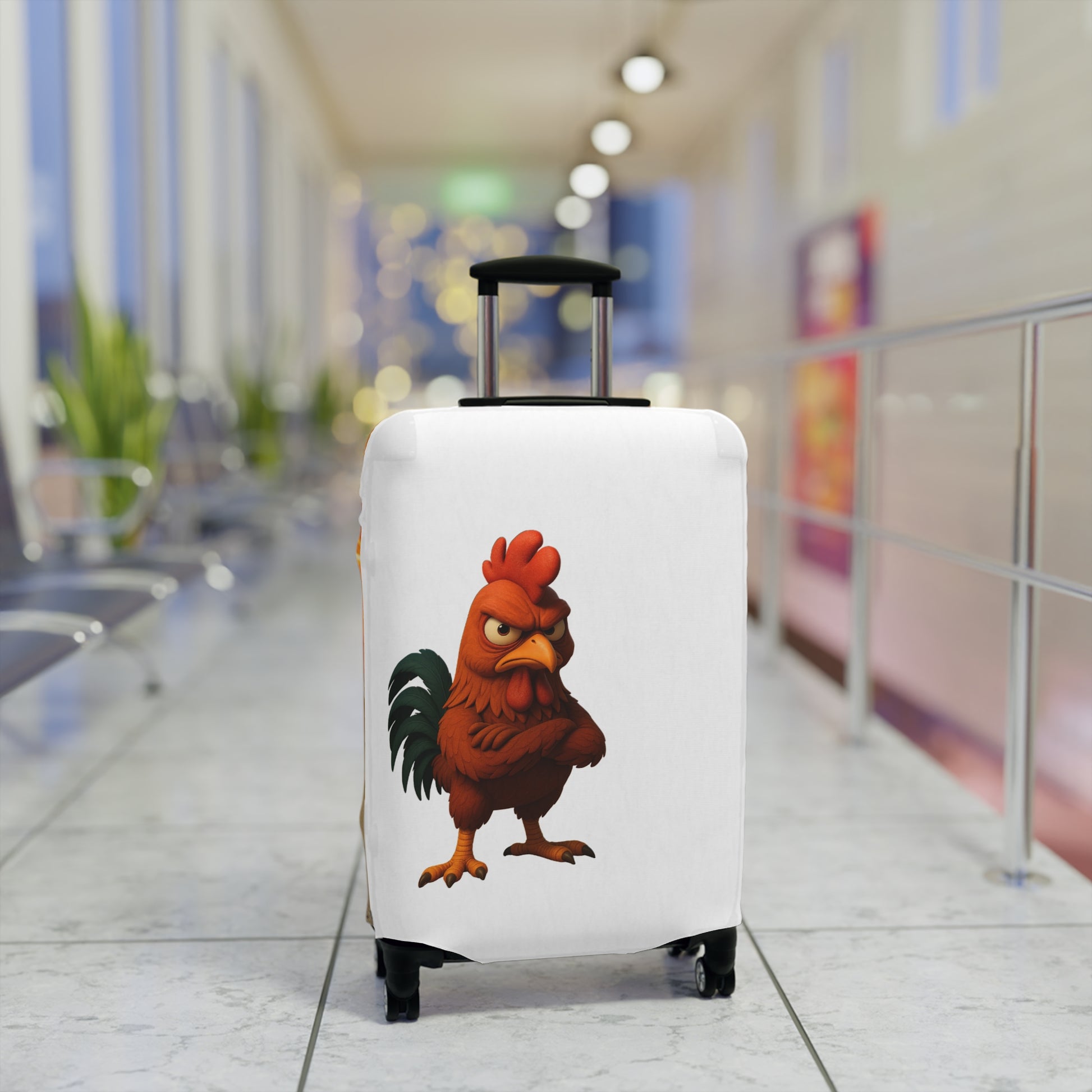 This luggage cover turns ordinary suitcases into storytelling companions. Made from a stretchy polyester-spandex blend, it slips on and hugs your suitcase for a snug, wrinkle-free look. The vivid printing brings bold illustrations—a cheeky rooster with serious attitude—to life so your bag stands out at the carousel. Thoughtful cutouts and a bottom zipper keep handles accessible and make removal simple, while the fabric blocks dust and light scuffs so your case keeps its character between trips. Choose from three sizes to get a tailored fit that reads like a little travel mood before you even unpack.