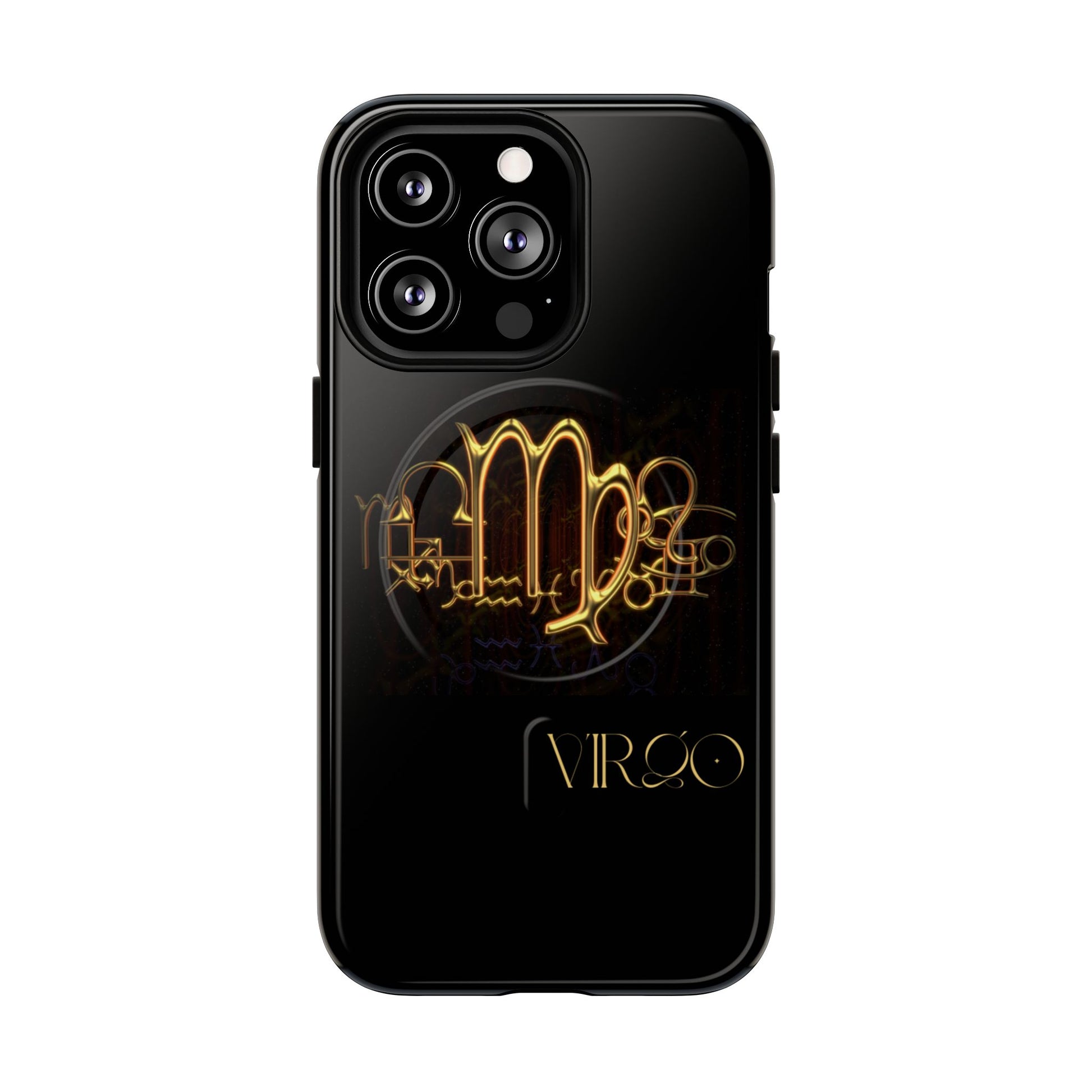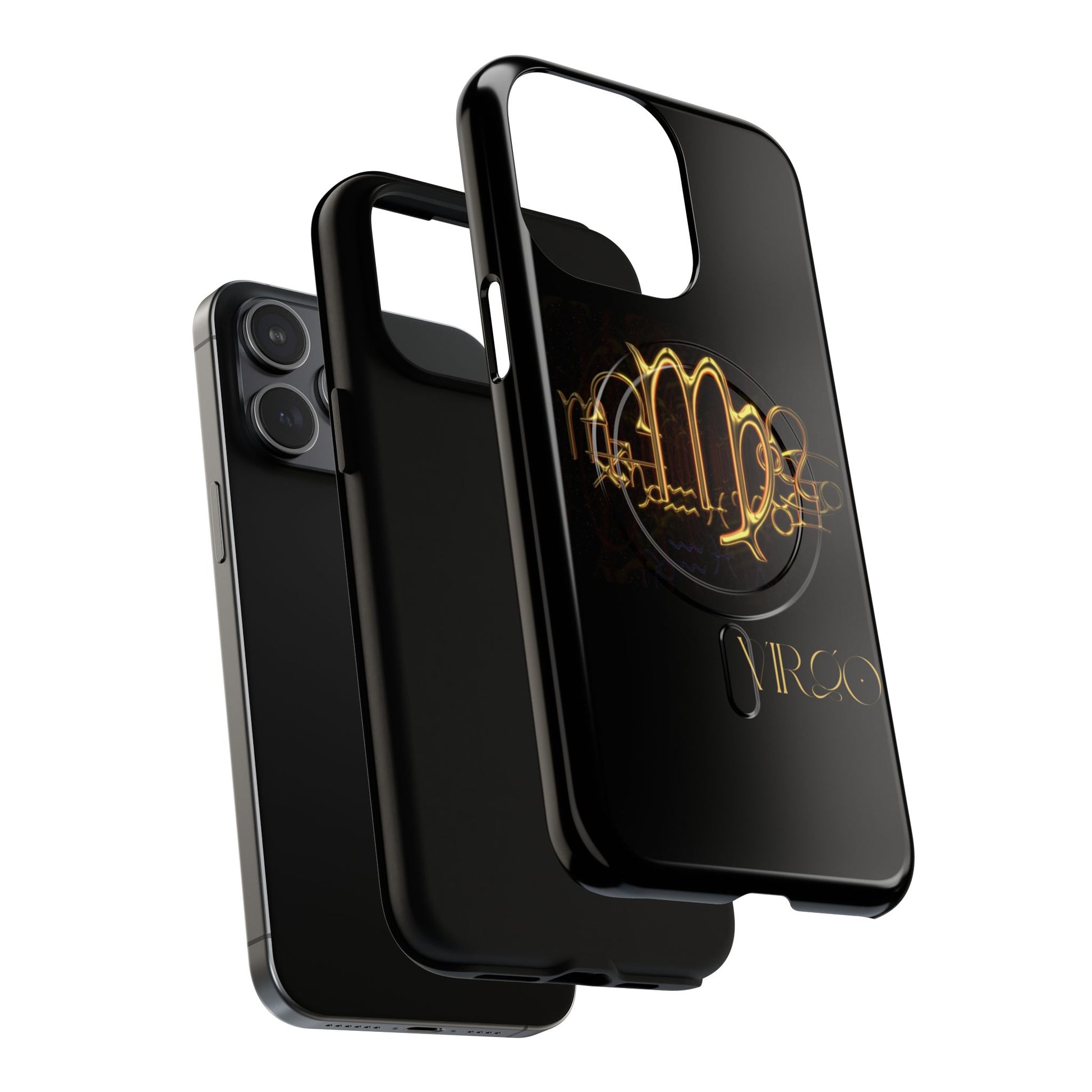 A sleek, protective phone case that blends glossy elegance with rugged protection. The design centers on a warm, gold-toned Virgo motif set against a deep black background, giving the case a refined, astrology-inspired look. The dual-layer construction—durable polycarbonate shell with a shock-absorbing TPU silicone liner—keeps your device safe from drops while maintaining a slim profile. The built-in magnetic module supports magnetic accessory attachment, and clear port cutouts preserve full connectivity. A 3D wrap print ensures the artwork stays vibrant and detailed.