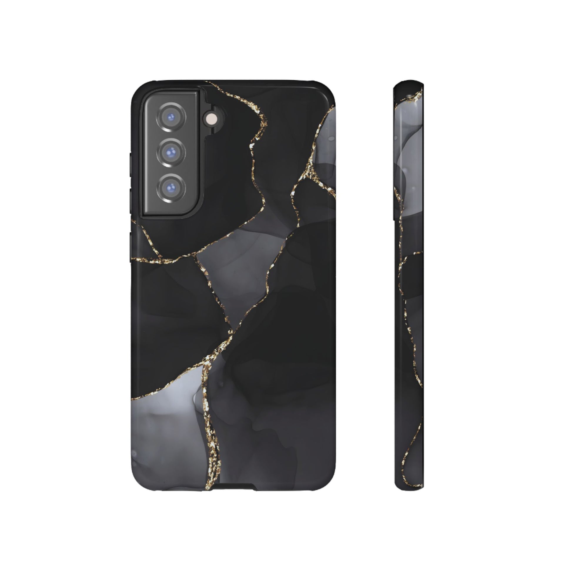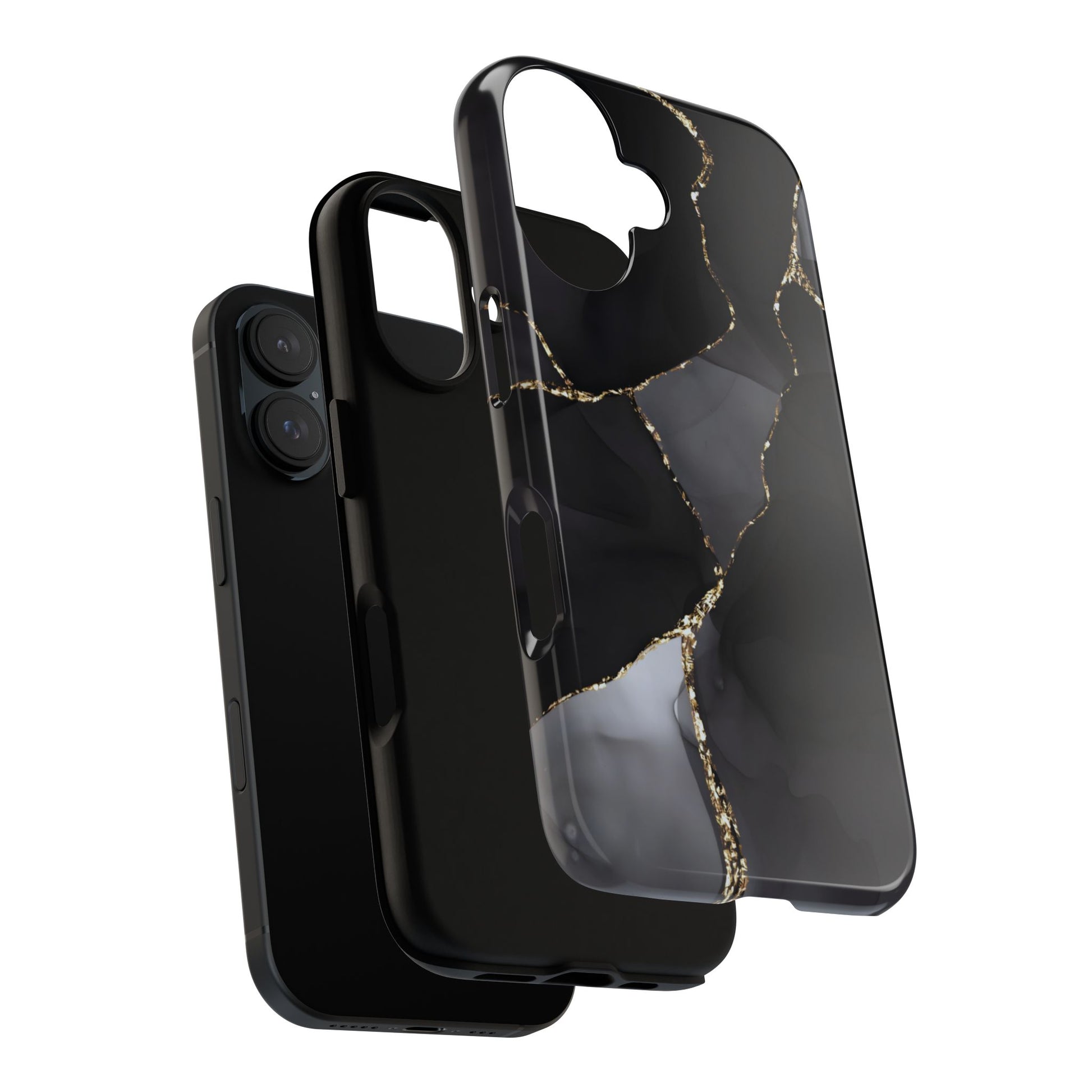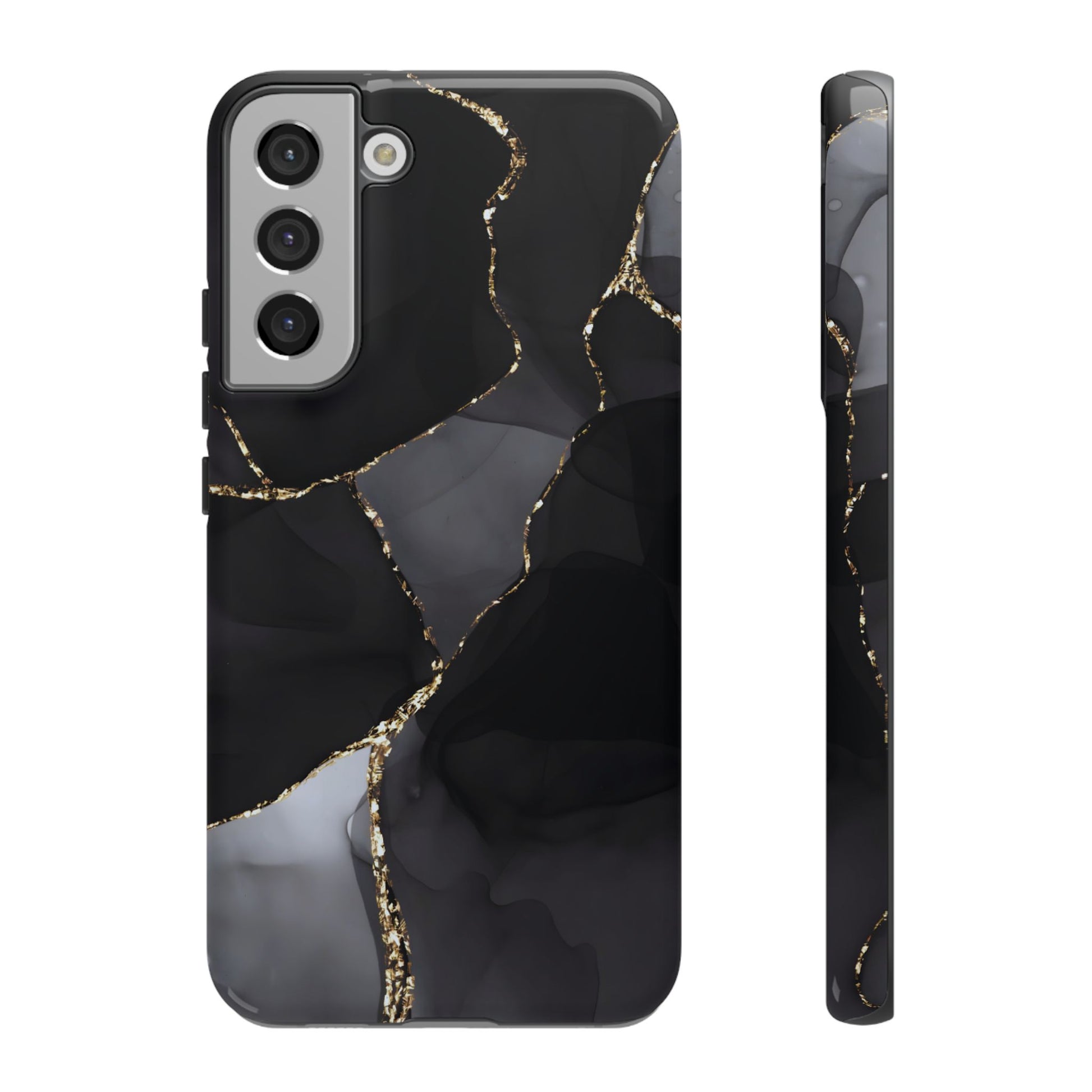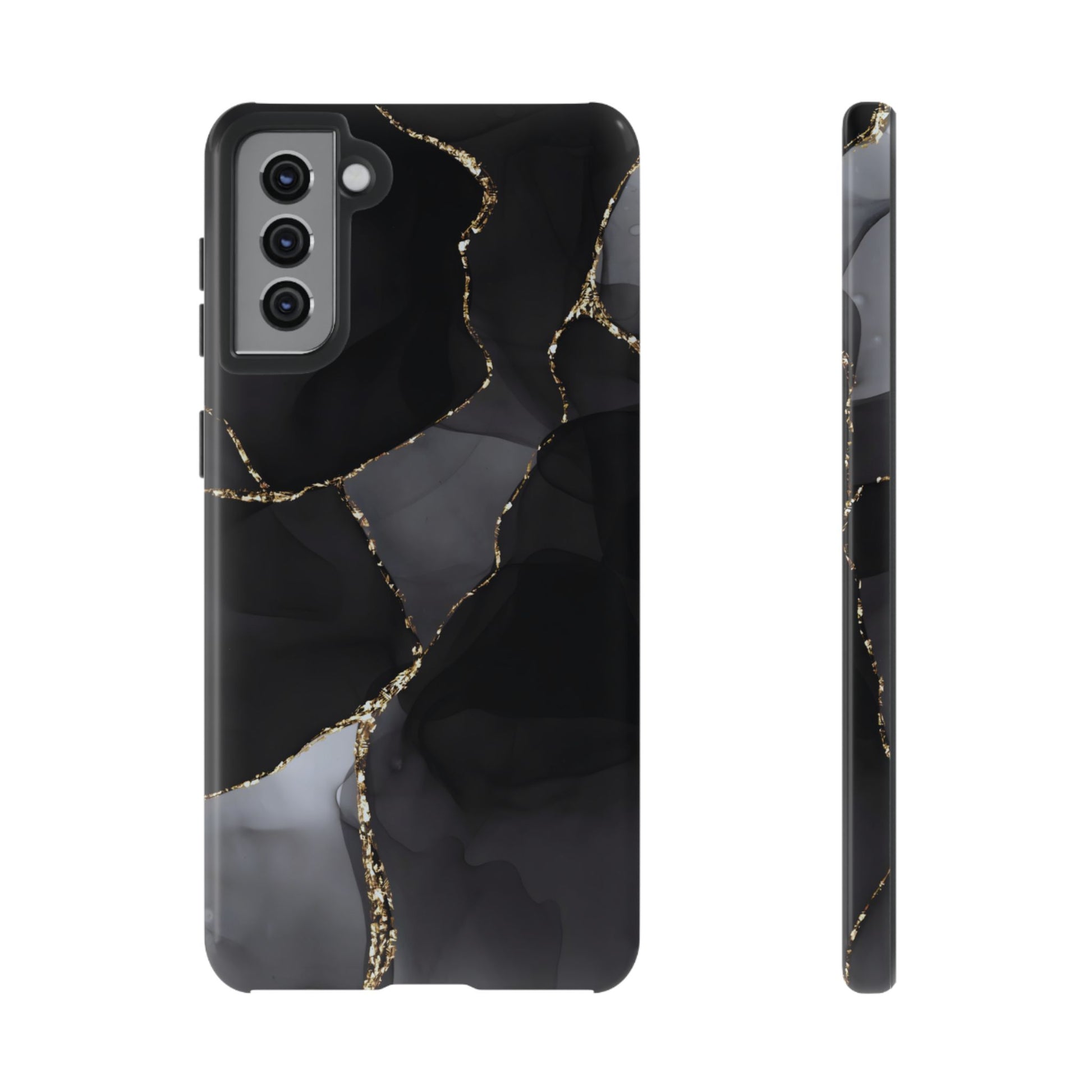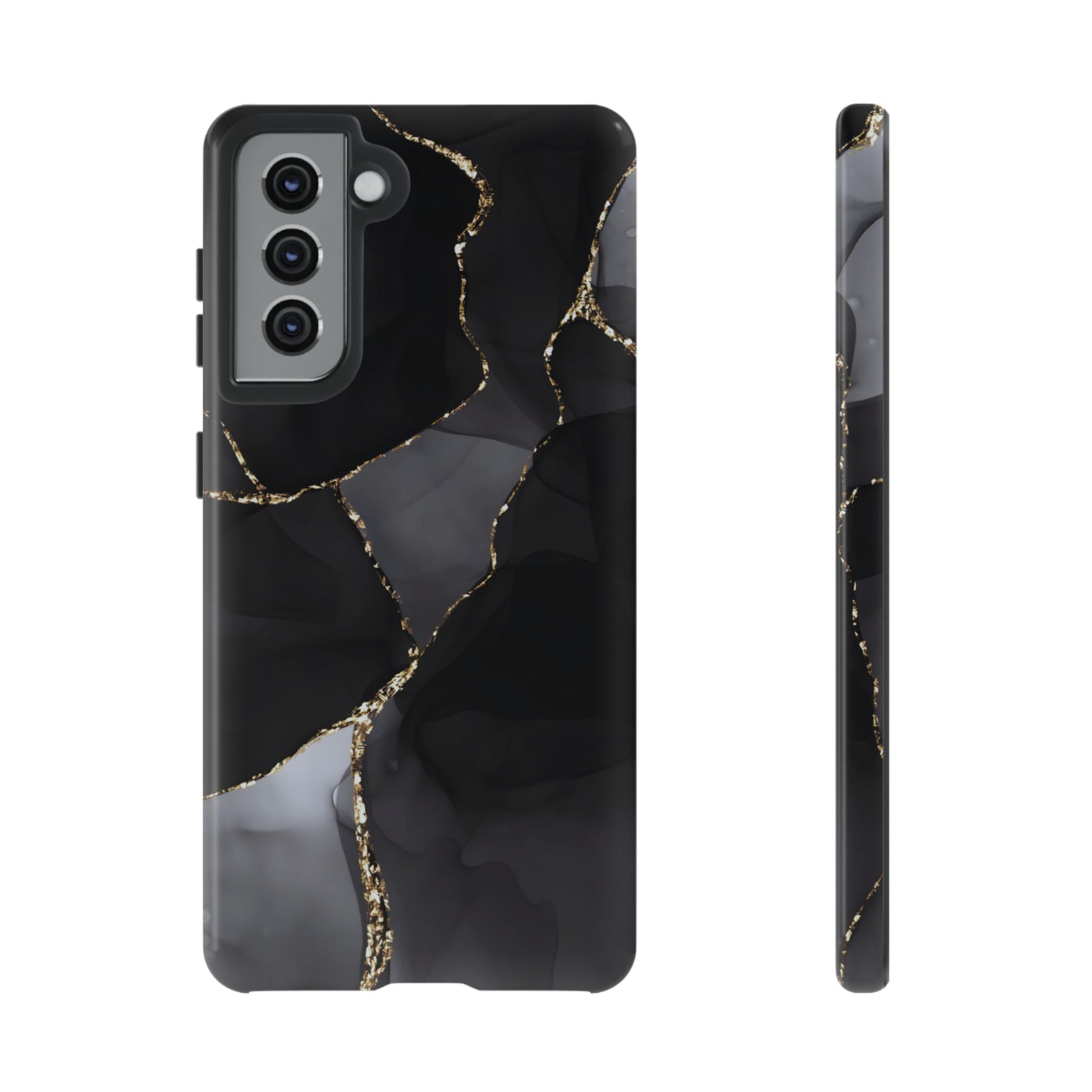 Luxury meets protection. This dual-layer protective case features the Obsidian Vein design—deep black marble with shimmering gold veining—so your phone looks like a statement piece while staying protected from everyday bumps and drops.