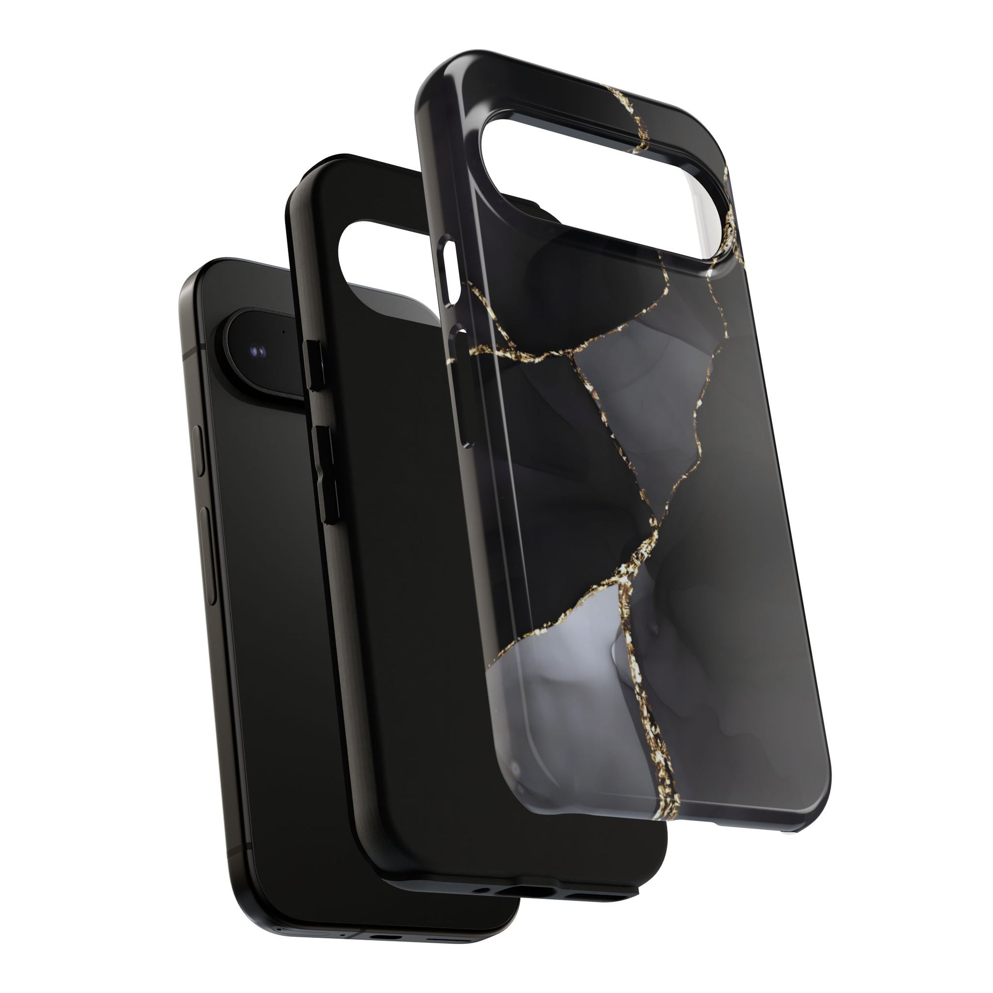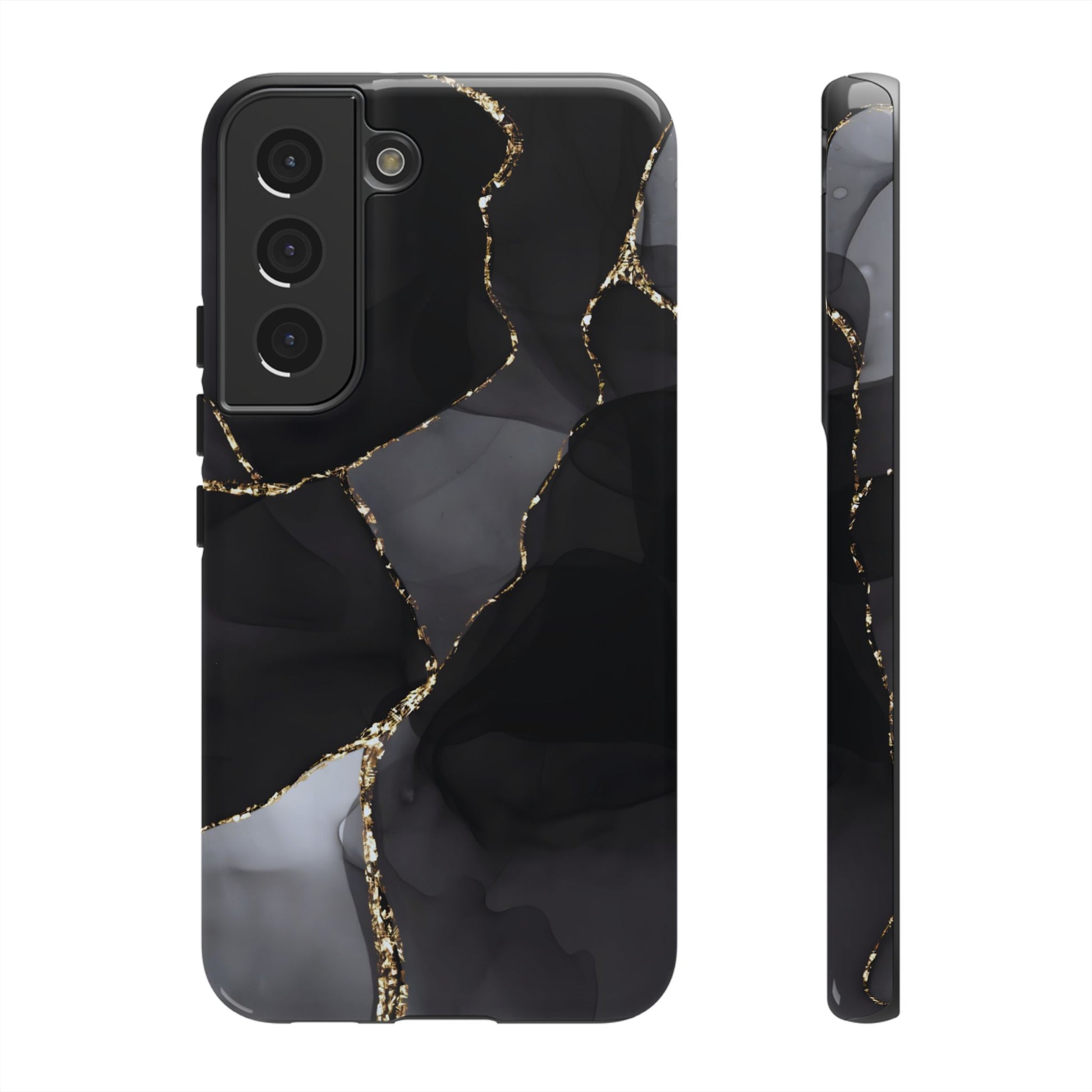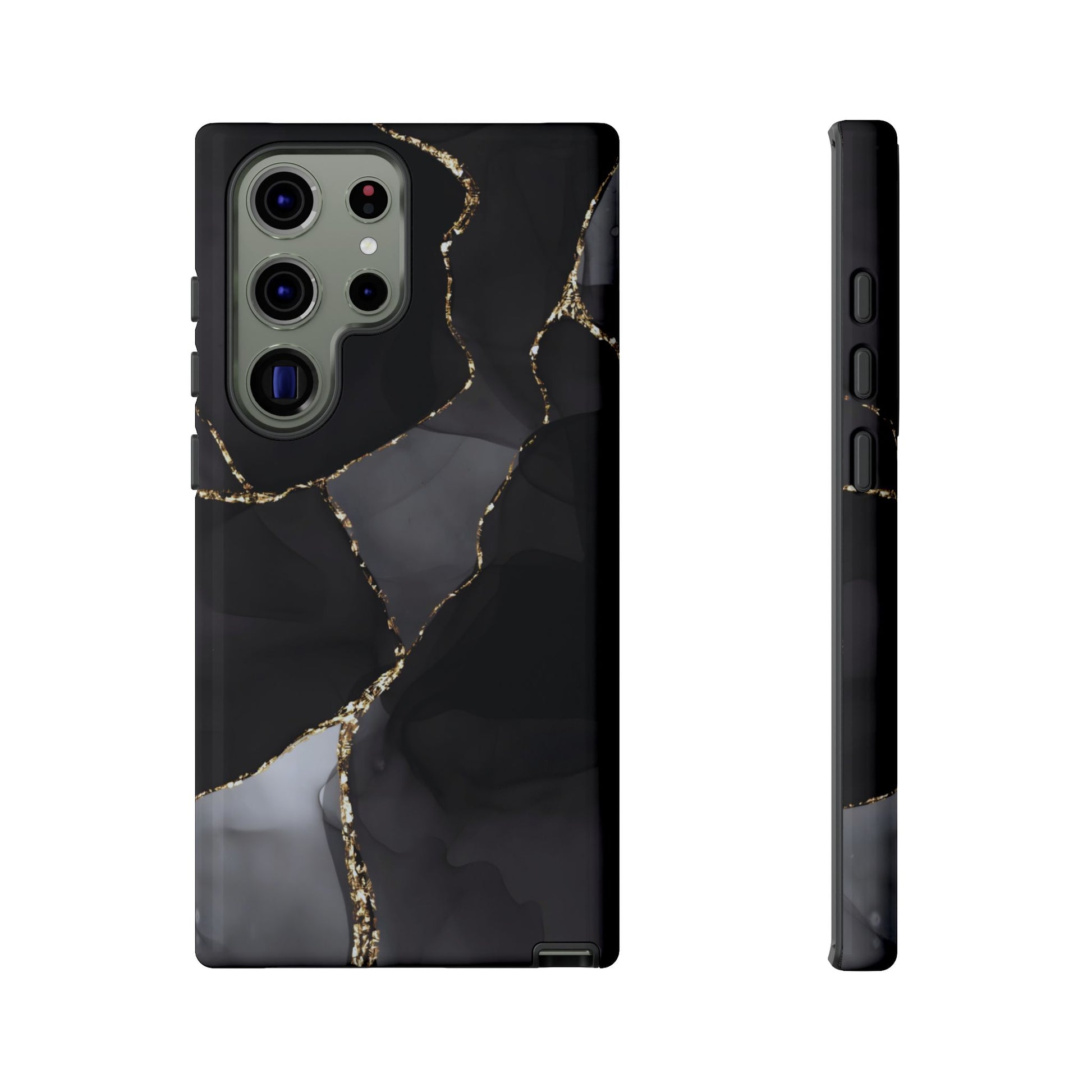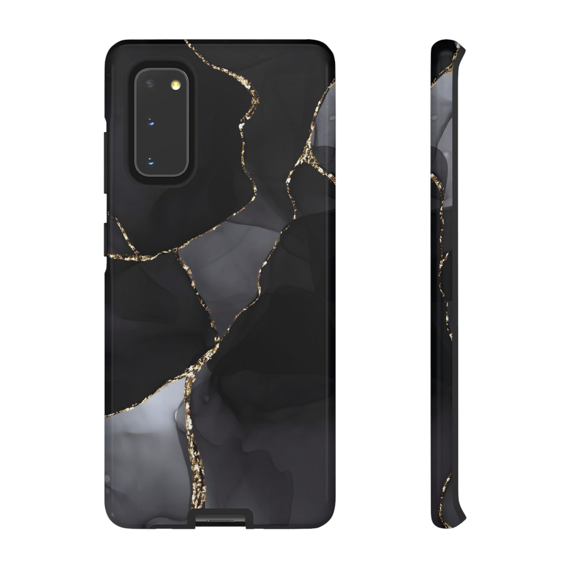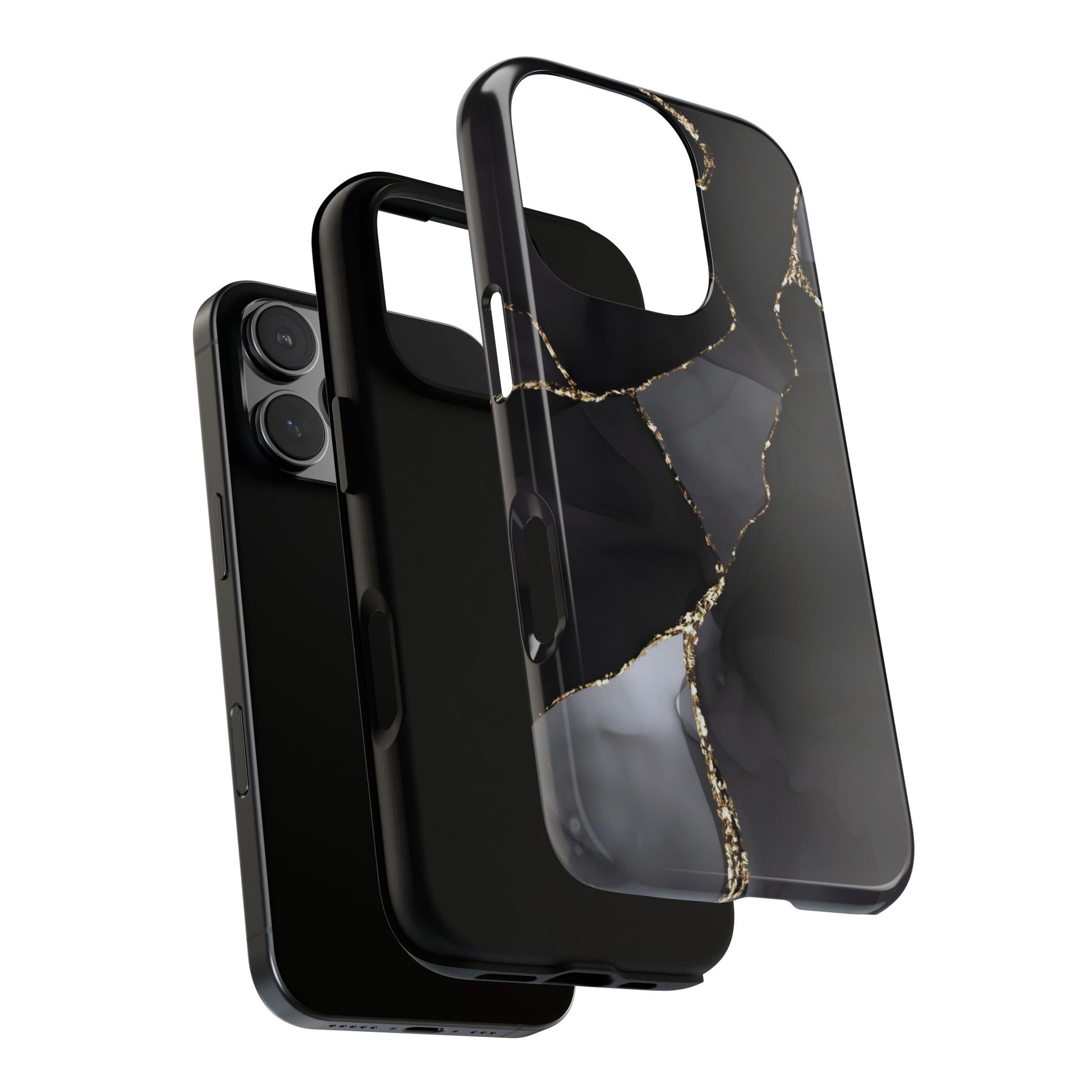 Luxury meets protection. This dual-layer protective case features the Obsidian Vein design—deep black marble with shimmering gold veining—so your phone looks like a statement piece while staying protected from everyday bumps and drops.