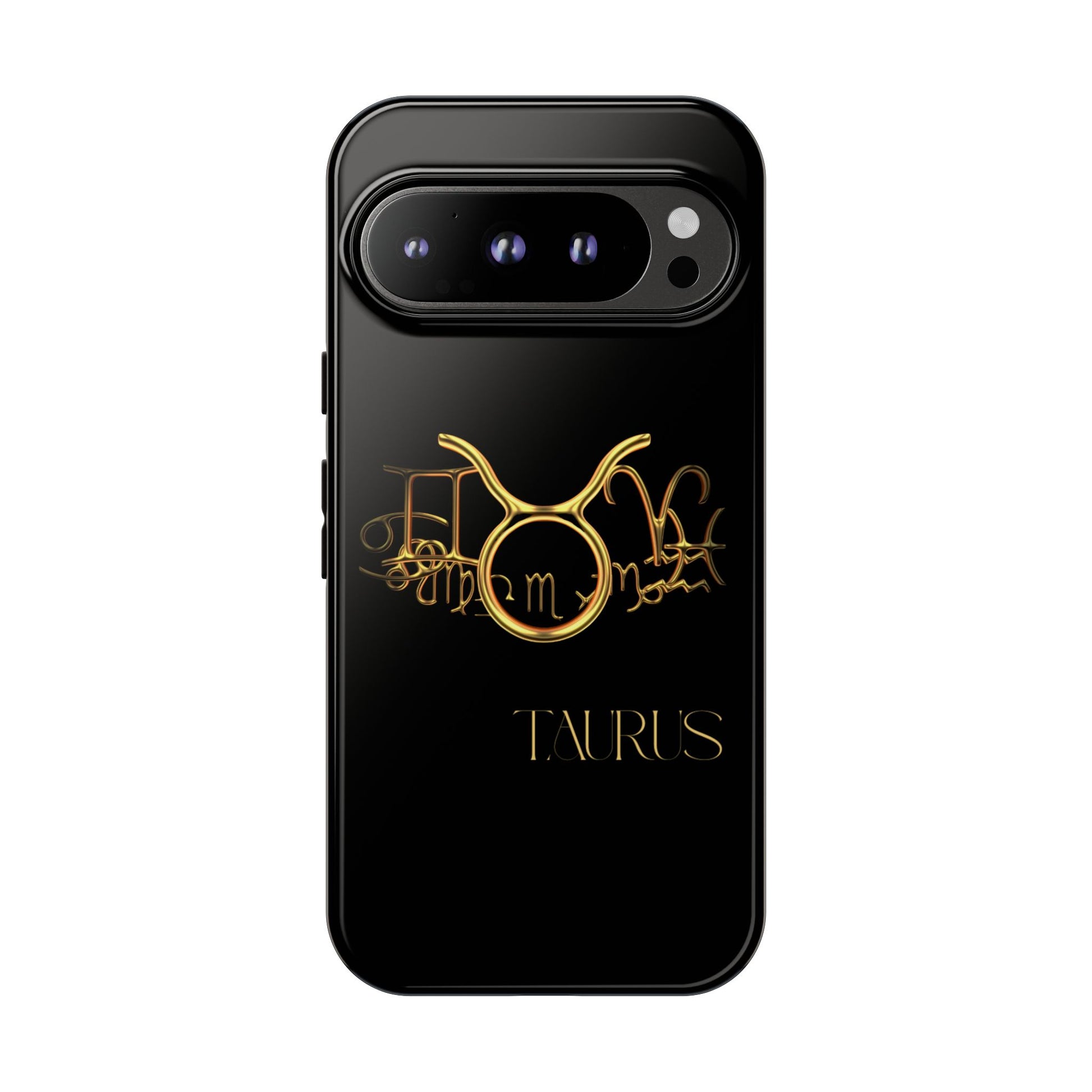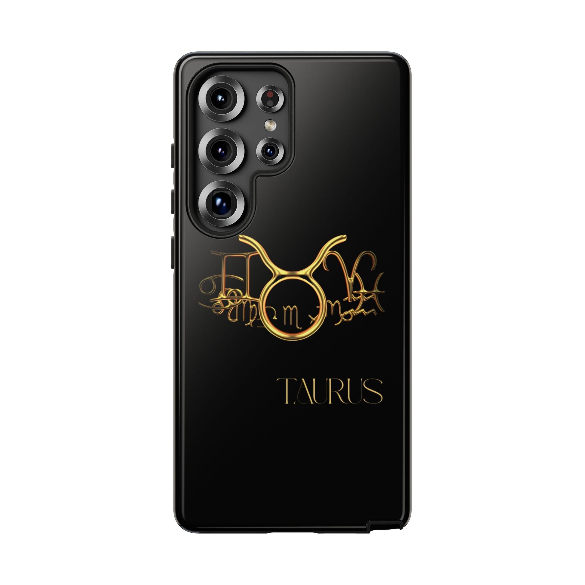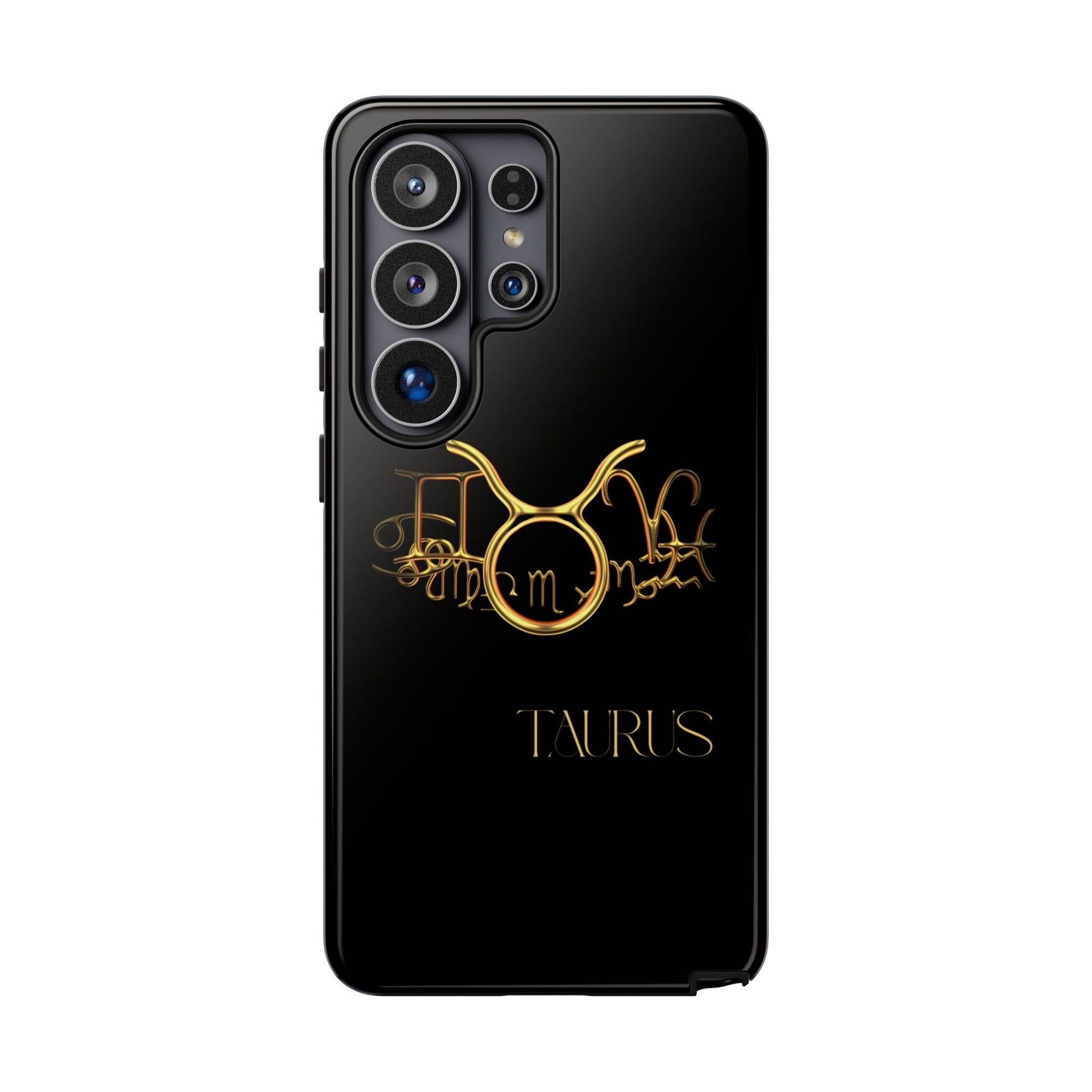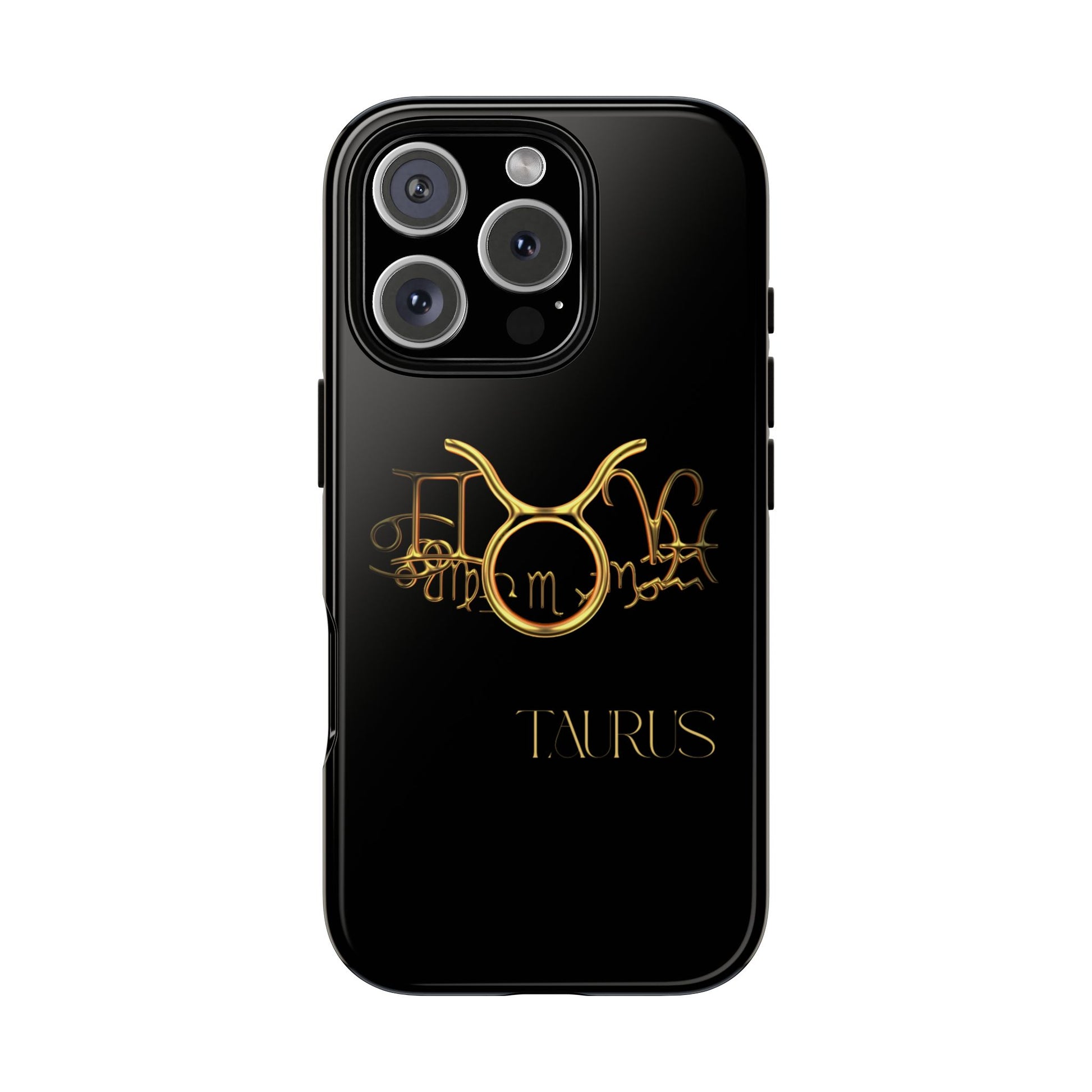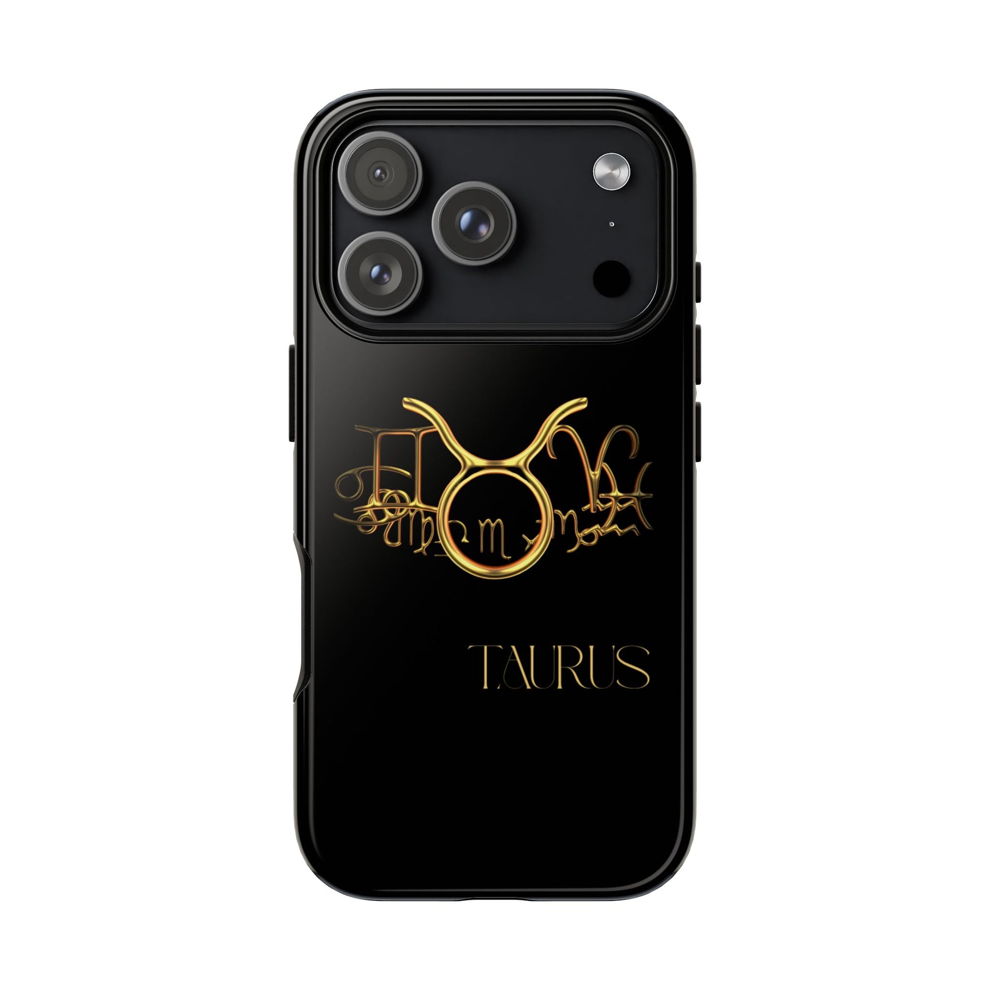 A sleek, dual-layer phone case that dresses your device in understated luxury. The deep matte black background lets the ornate gold Taurus emblem and lettering stand out with quiet confidence. Slim but protective, this case absorbs shocks while keeping ports accessible and wireless charging available—so your phone stays guarded without getting bulky. The design feels personal and grounded for someone who values strength, stability, and a touch of celestial style.