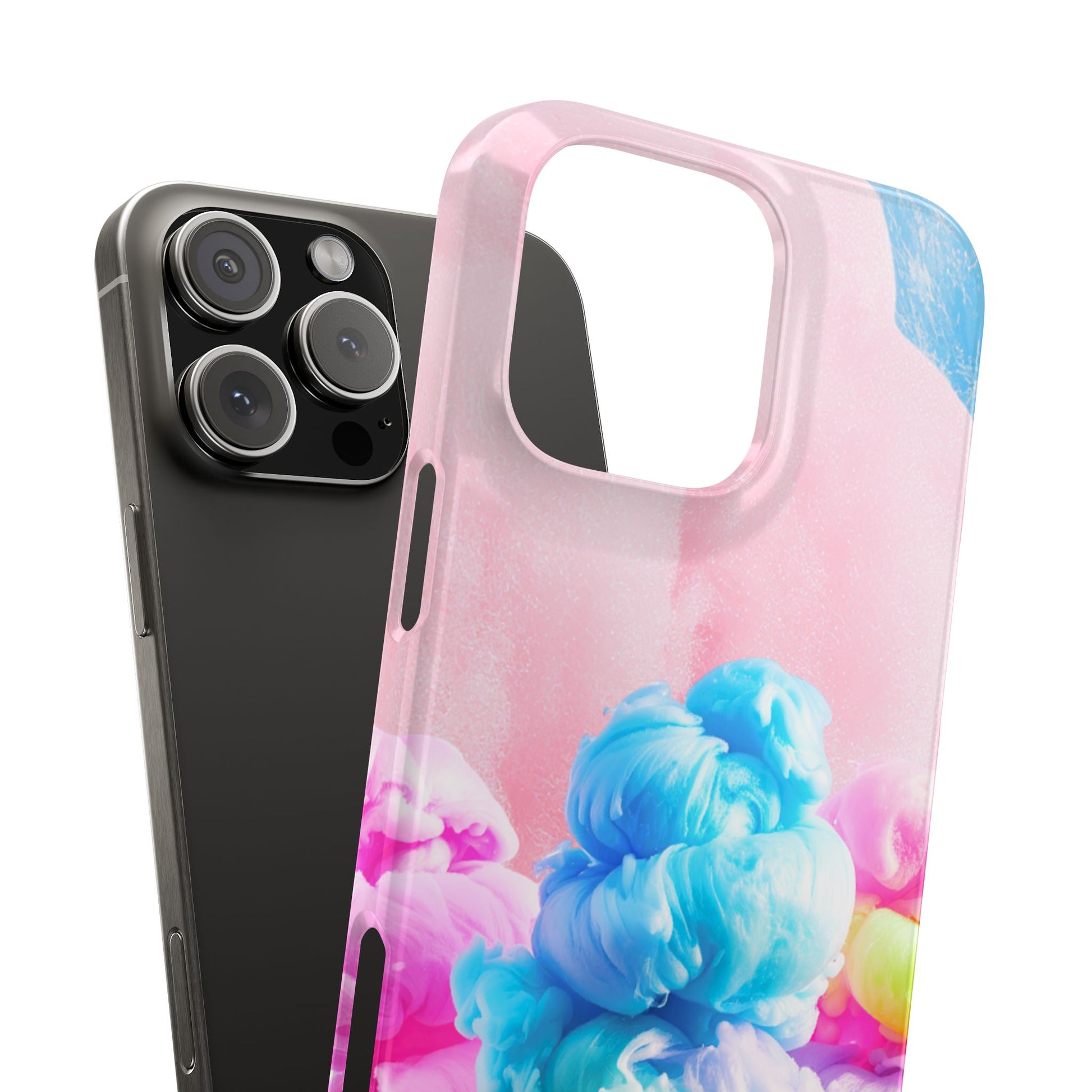 Soft clouds of pastel blue, pink, and hints of neon swirl together like freshly spun cotton candy, creating a playful, airy design that feels light and nostalgic. The texture has a fluffy, whipped look with a subtle sugar-dust fade in the background, giving it that dreamy, fairground-inspired vibe without feeling overdone. It’s bright, fun, and just the right amount of bold.