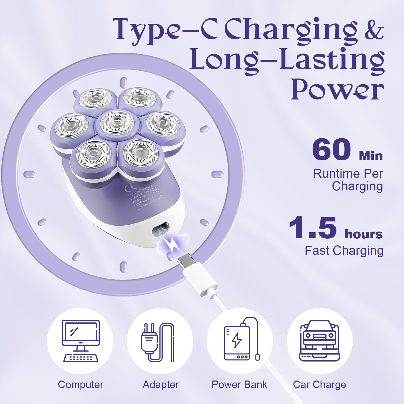 Bartrimber Women’s Electric Shaver – 7D Floating Head, Wet/Dry, Cordless (Purple)