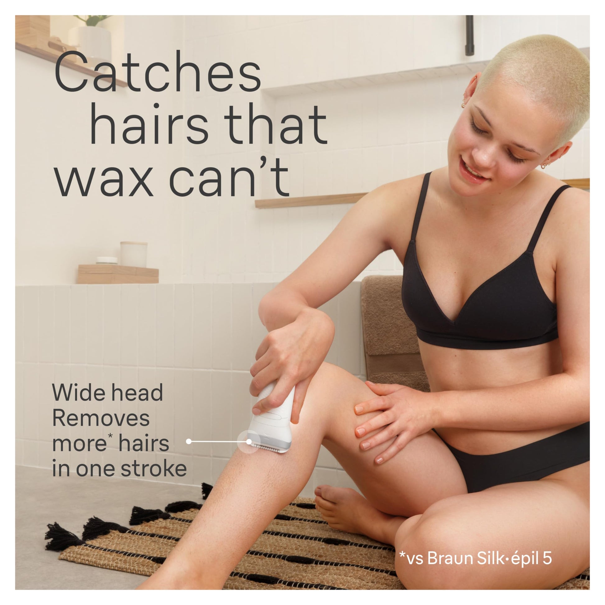 Up to one month of smooth skin at home, with a comfort-focused epilator that grabs even short hairs.
