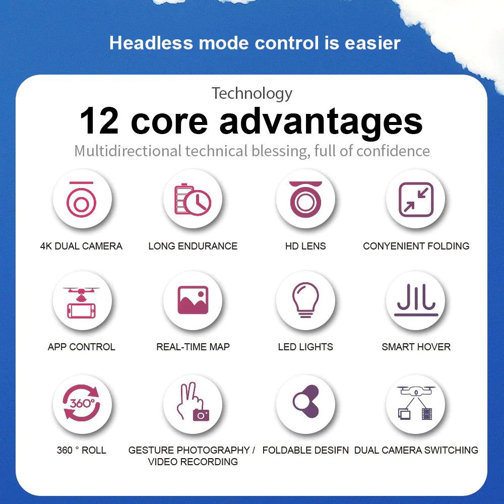 X Pro GPS Drone - 5G 4K Dual HD Camera, Foldable RC Quadcopter