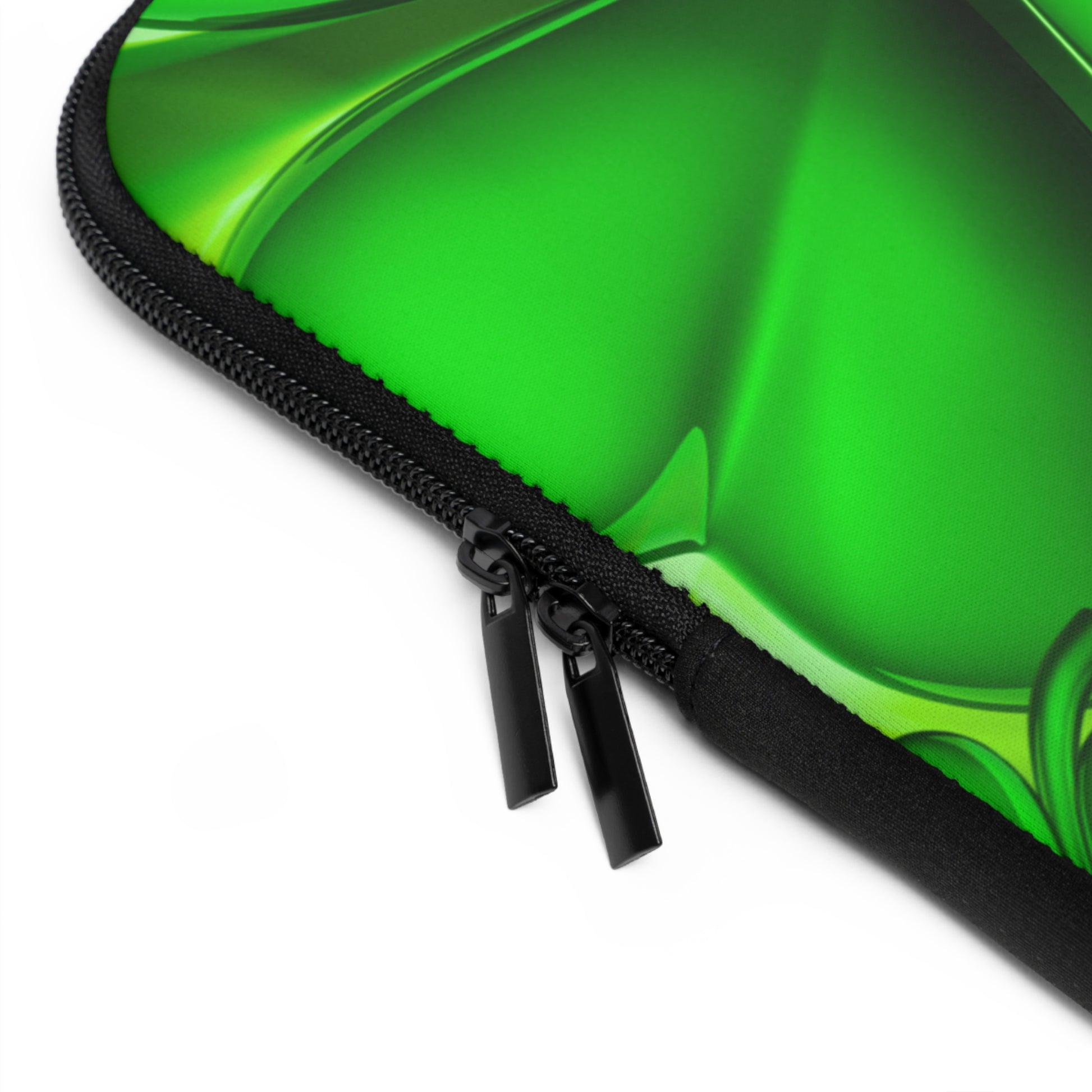 Bring a little lucky charm to your commute. This padded laptop sleeve features the Lucky Clover Cupcake design with bold green frosting and festive energy on the front, while a solid black back keeps it grounded and versatile. The dual zippers make it easy to slip your device in and out, and the foam padding helps protect against everyday bumps and dust.