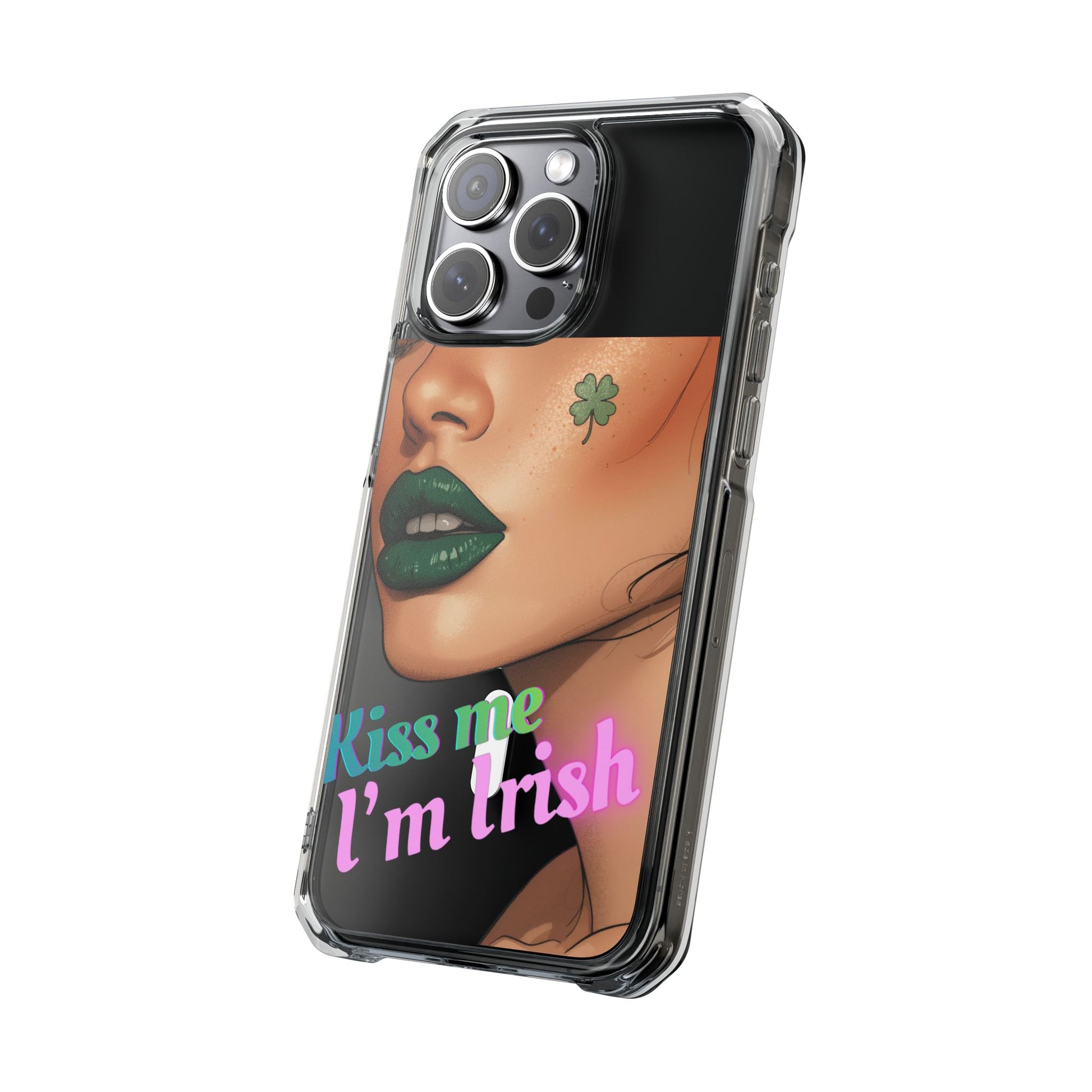 Clear Magnetic Phone Case – Slim Protection with “Kiss Me I’m Irish” Print
