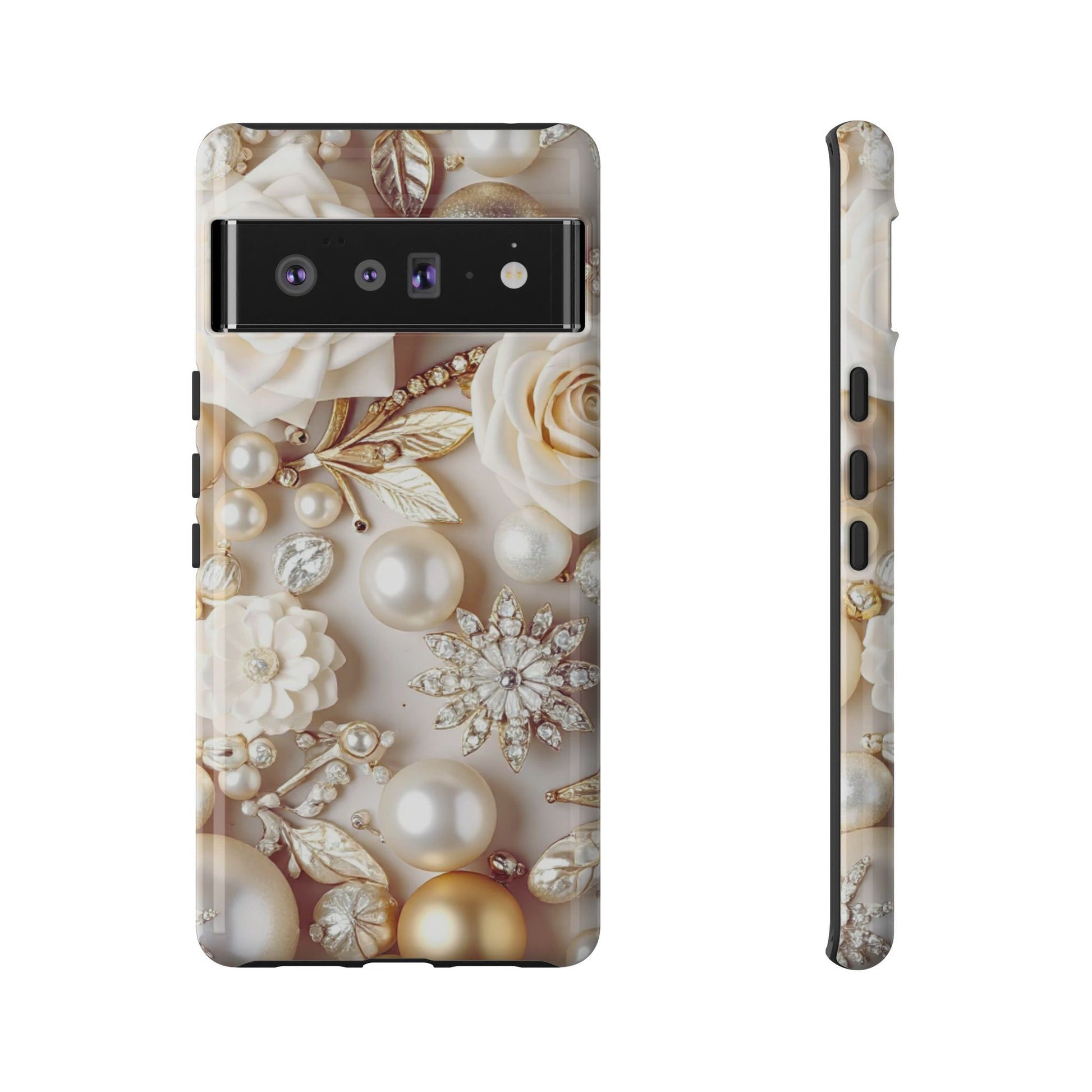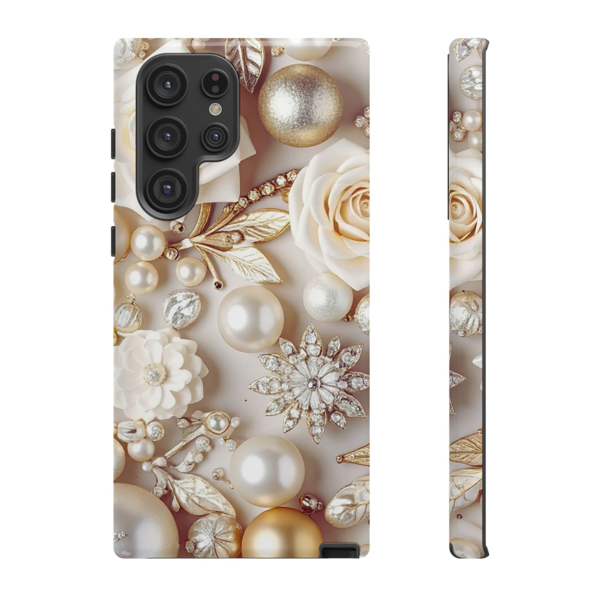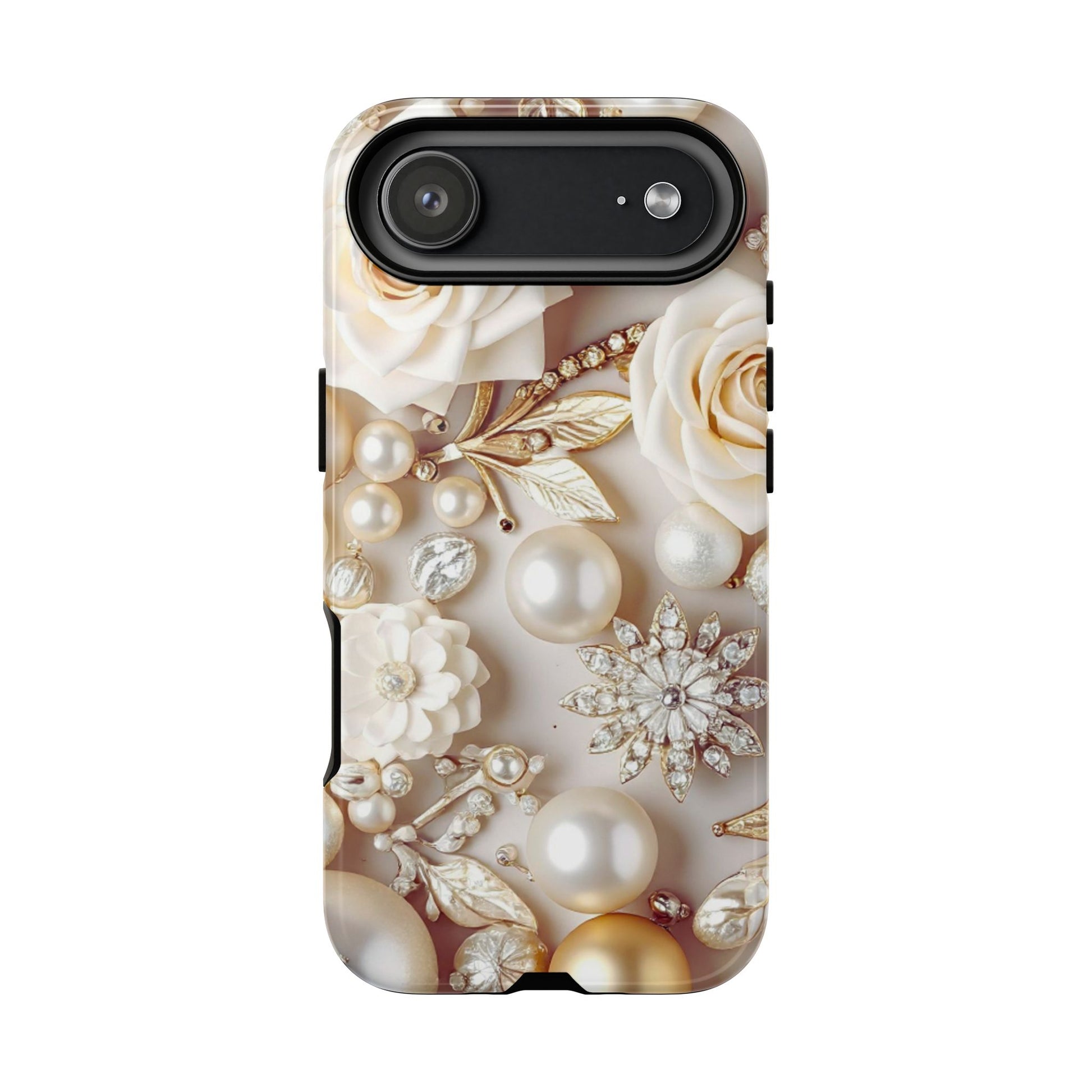 Elevated and effortlessly refined, this case blends soft ivory florals with luminous pearl accents and brushed gold details for a look that feels timeless without trying too hard. It brings a polished, almost jewelry-like presence to your everyday carry—clean, warm, and quietly bold in all the right ways.