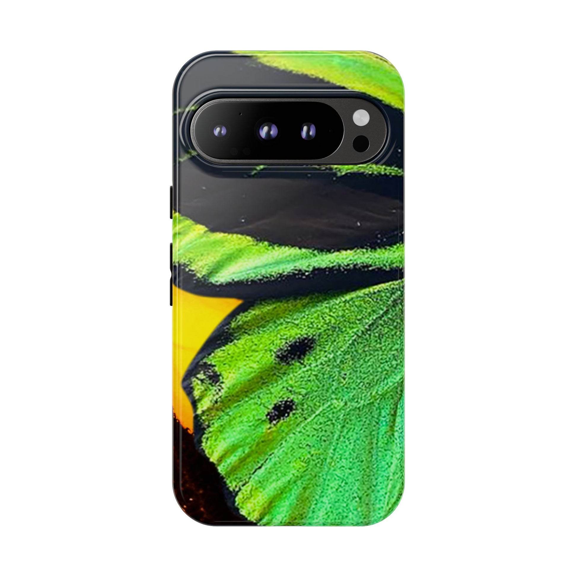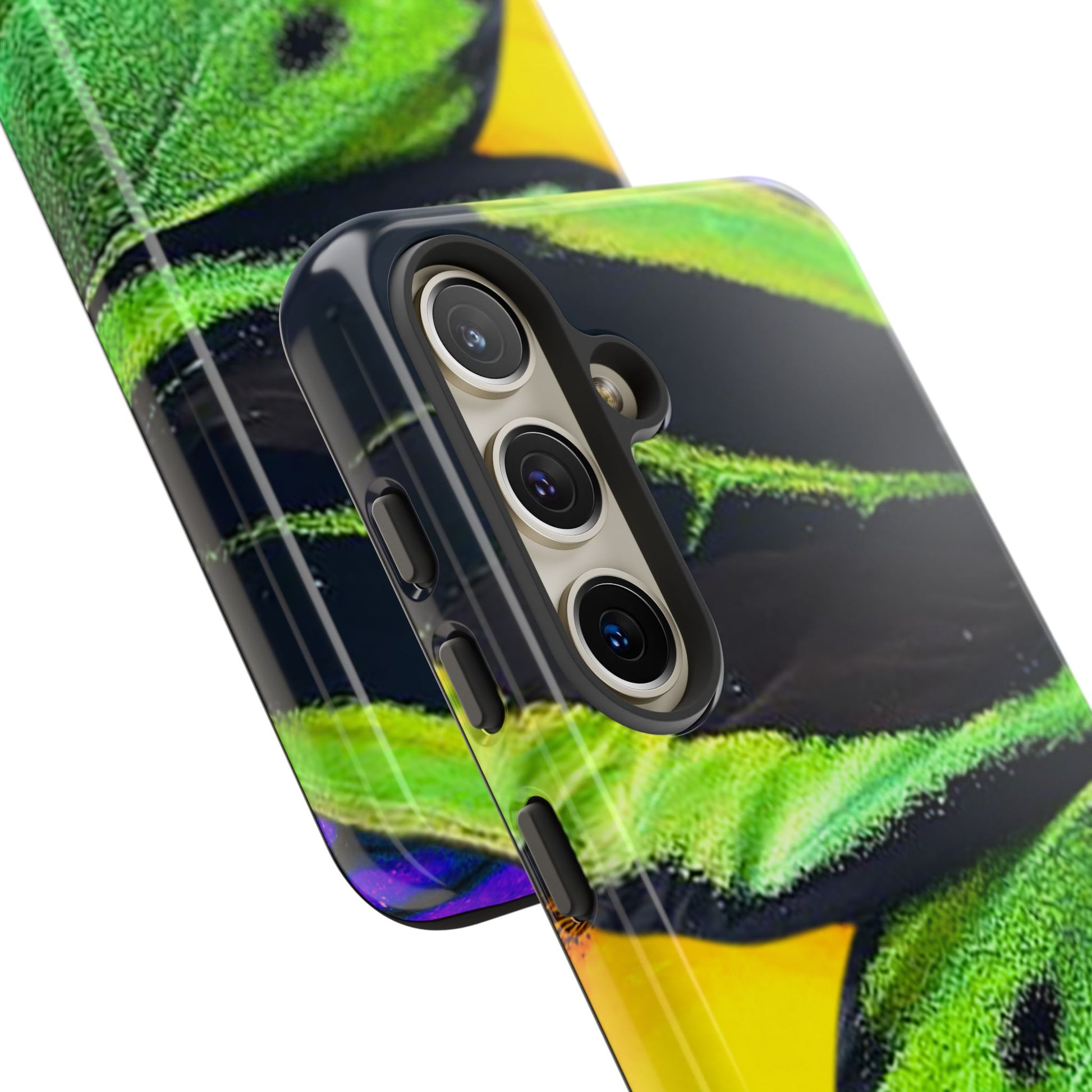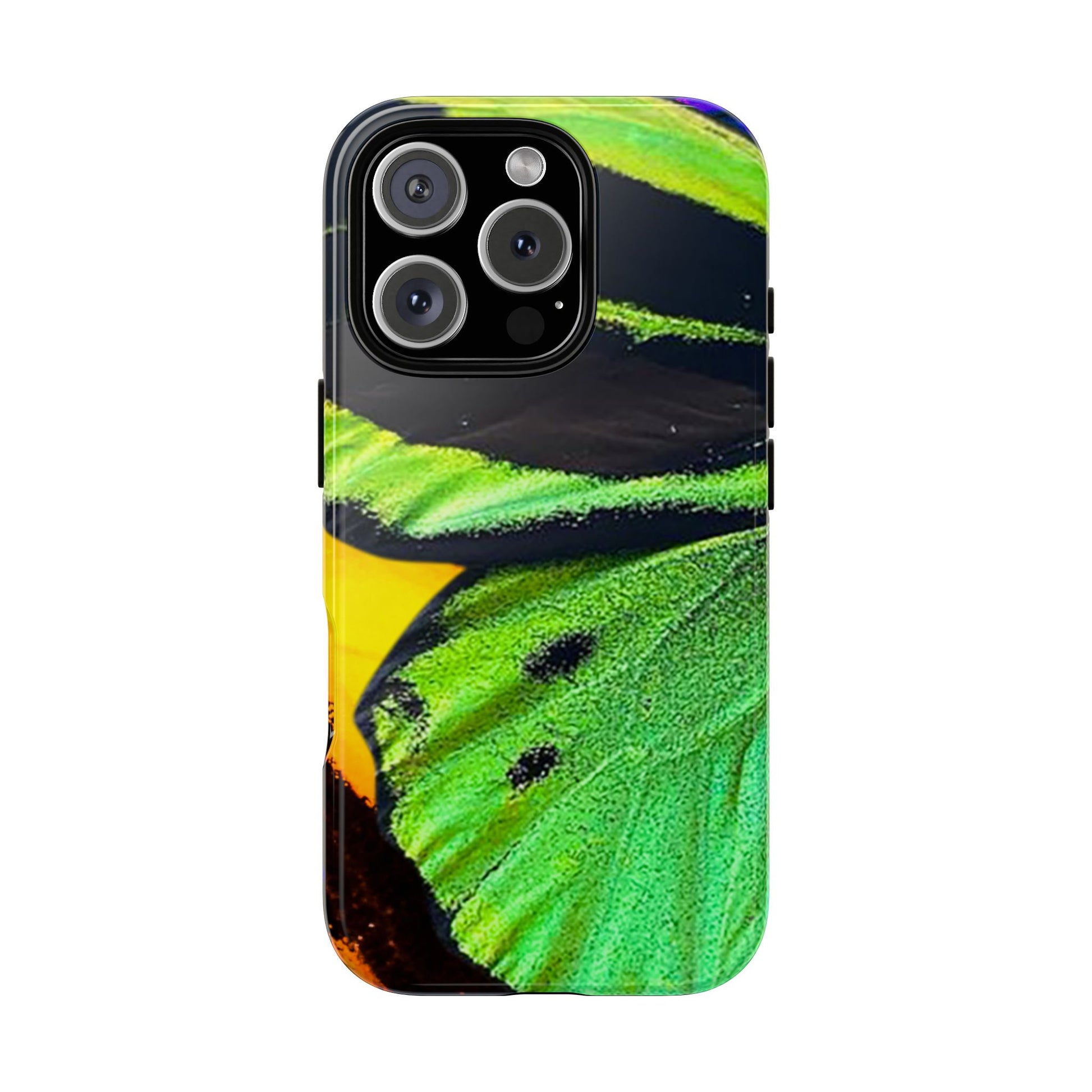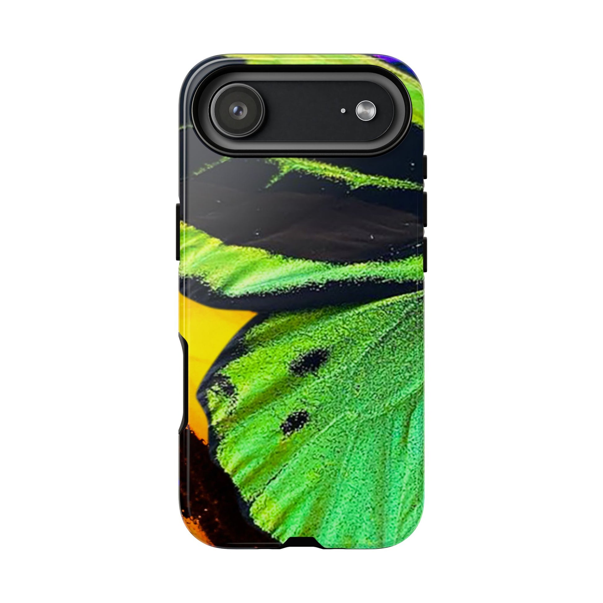 Bring bold contrast and texture to your everyday carry with a close-up wing pattern that blends electric greens, deep blacks, and flashes of warm yellow and violet. The layered detail gives your phone a sharp, high-energy look that feels almost alive in motion.