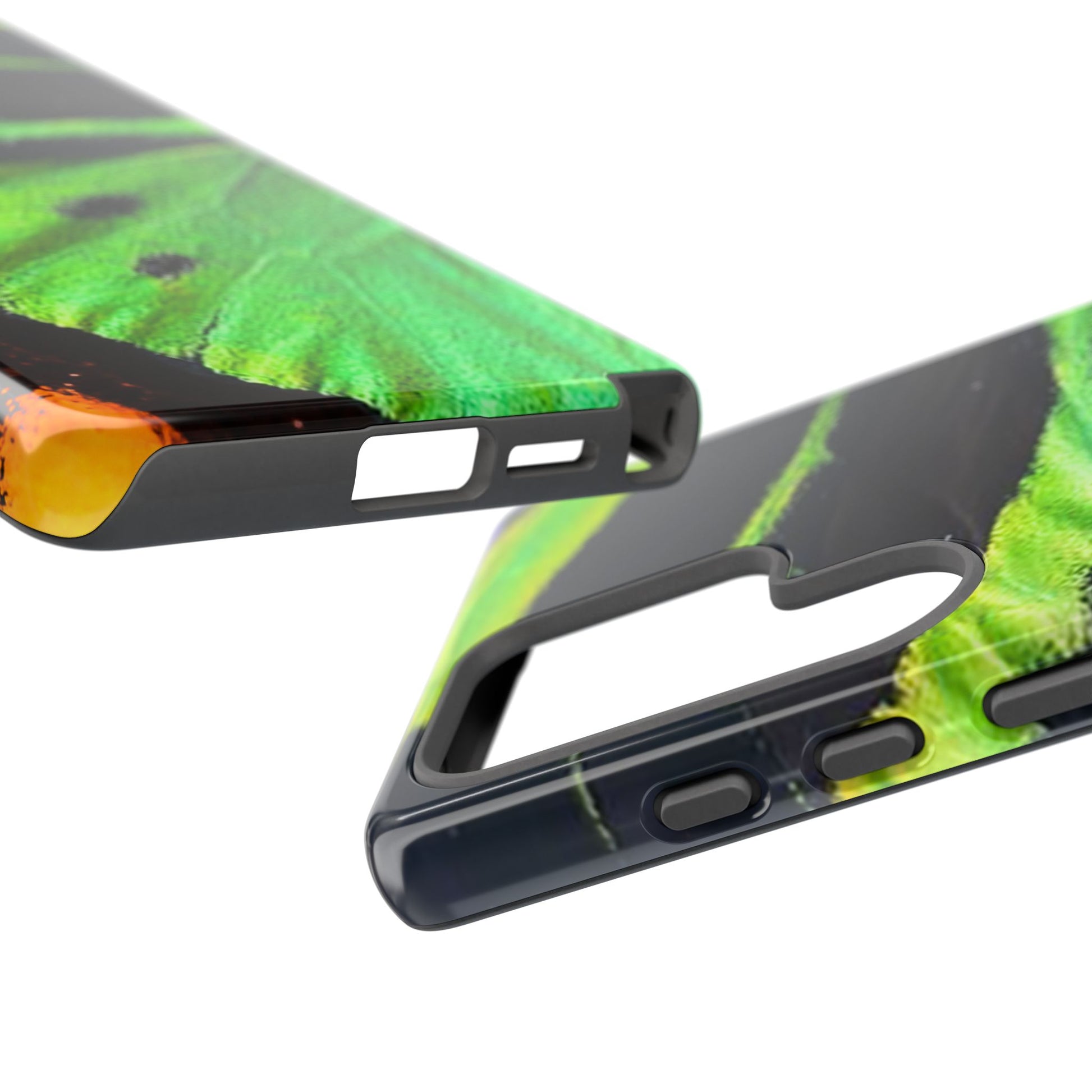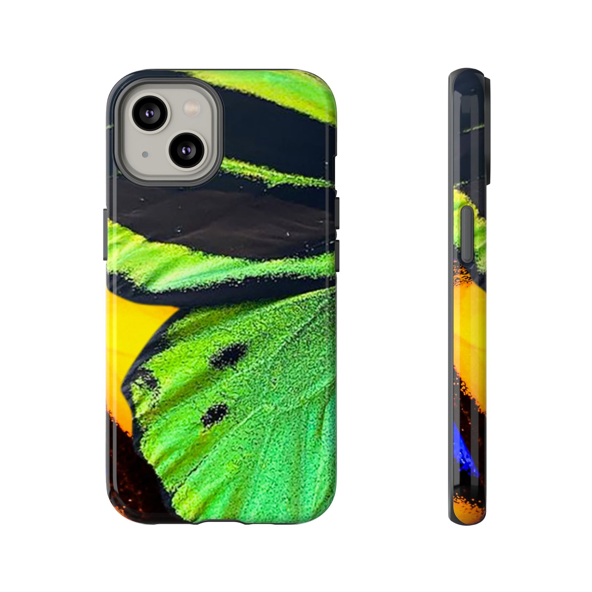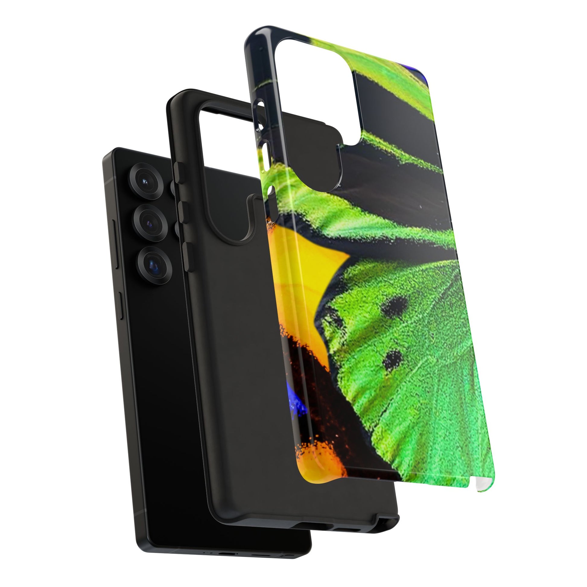 Bring bold contrast and texture to your everyday carry with a close-up wing pattern that blends electric greens, deep blacks, and flashes of warm yellow and violet. The layered detail gives your phone a sharp, high-energy look that feels almost alive in motion.