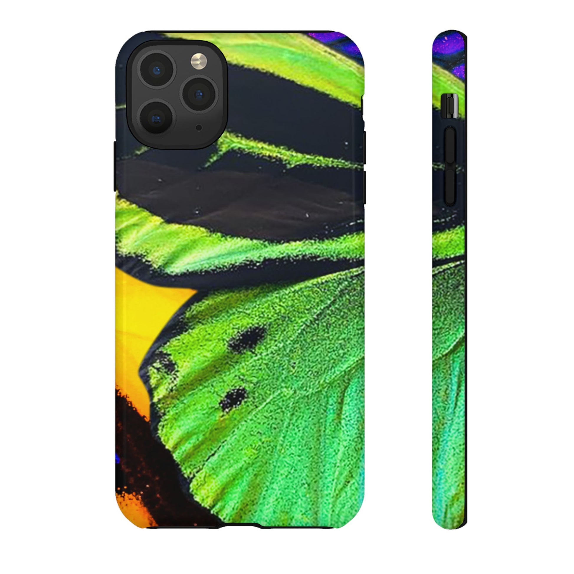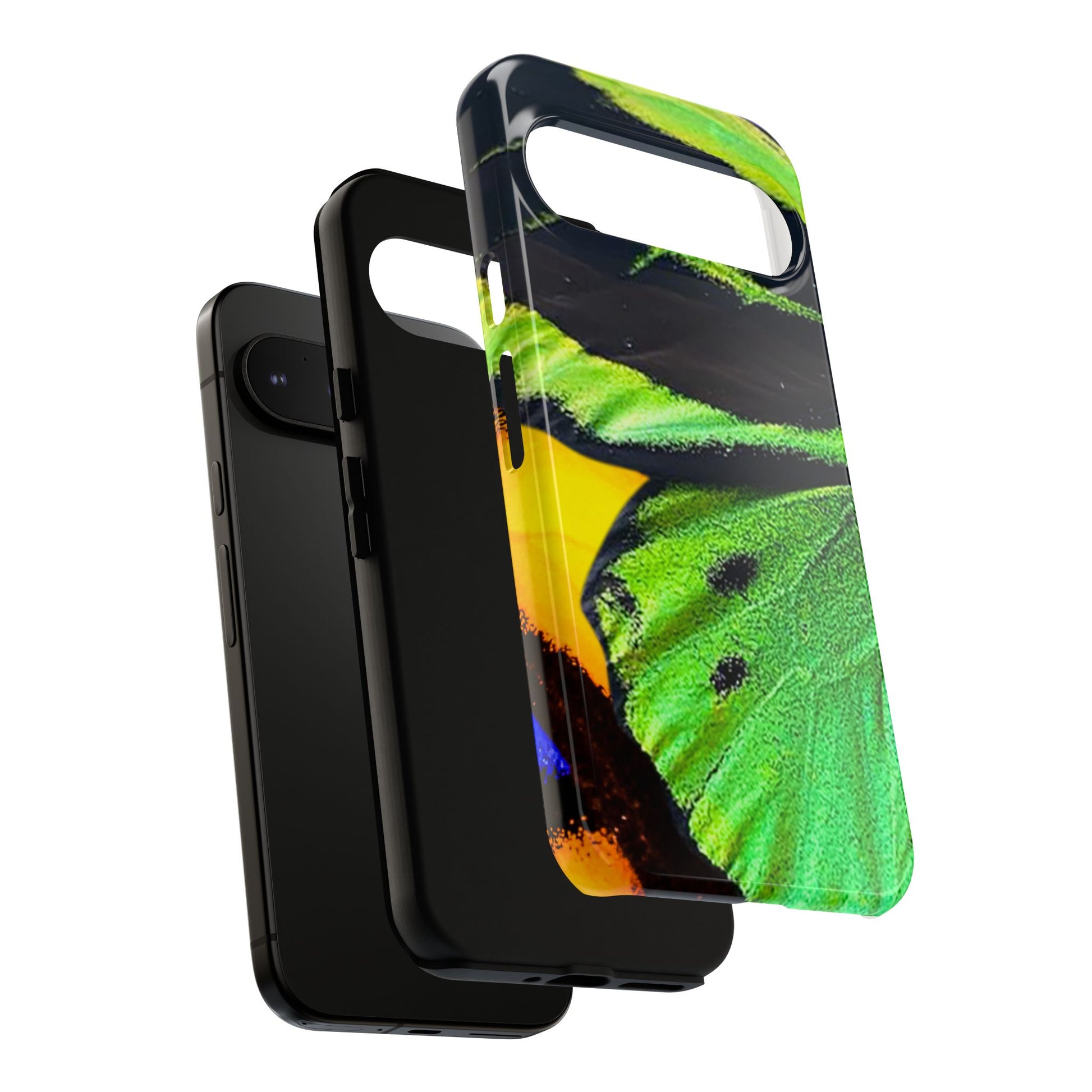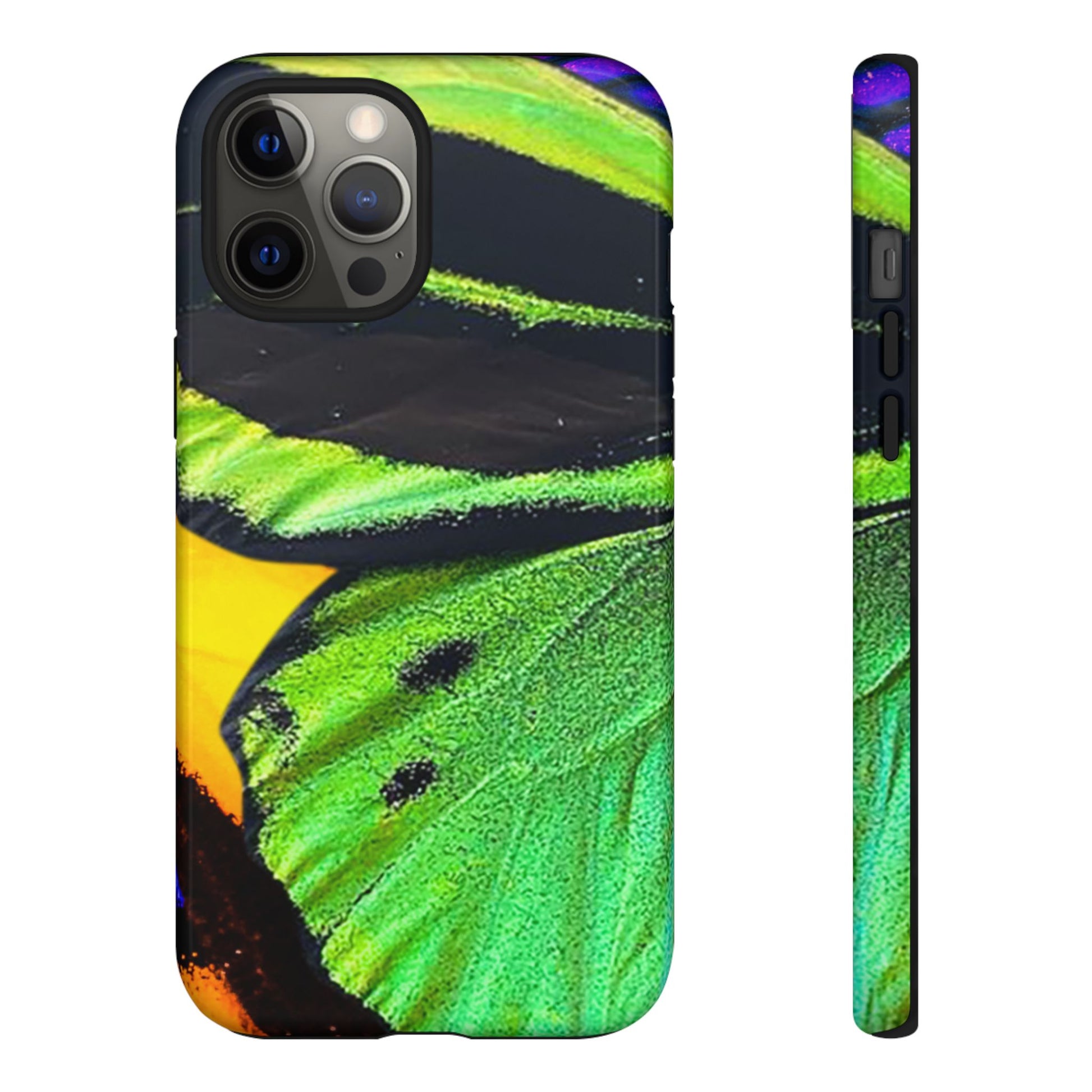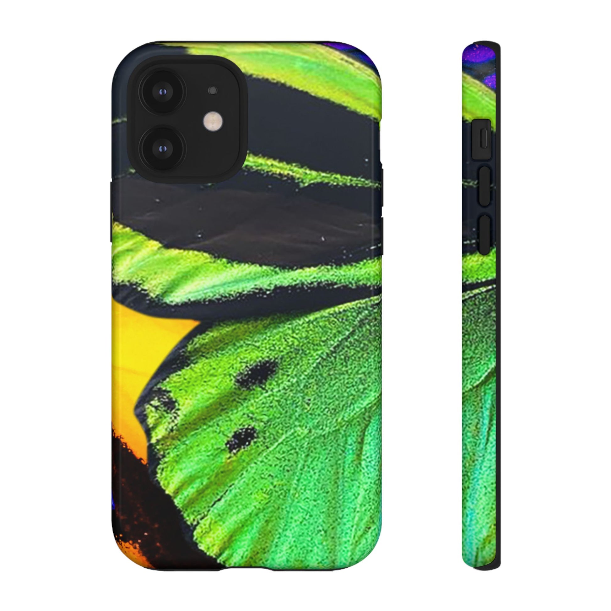 Bring bold contrast and texture to your everyday carry with a close-up wing pattern that blends electric greens, deep blacks, and flashes of warm yellow and violet. The layered detail gives your phone a sharp, high-energy look that feels almost alive in motion.