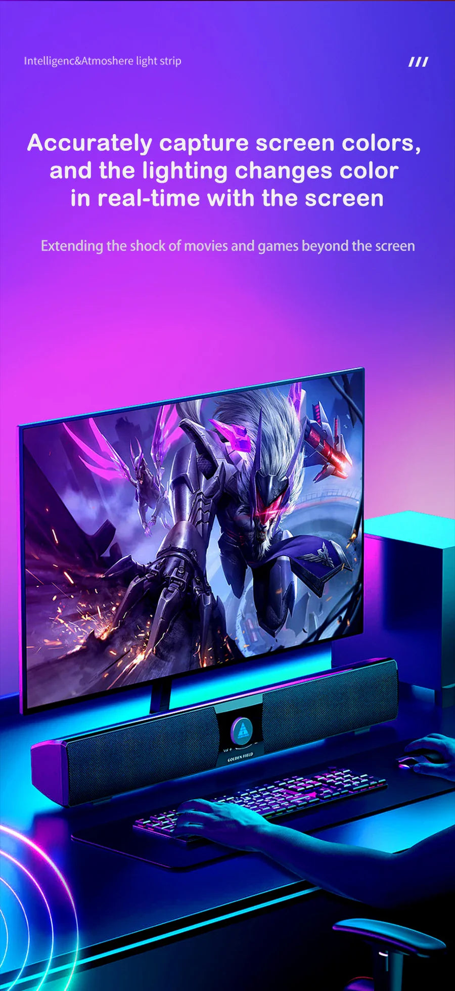 - Syncs lighting with your on-screen content for movies, games, and media