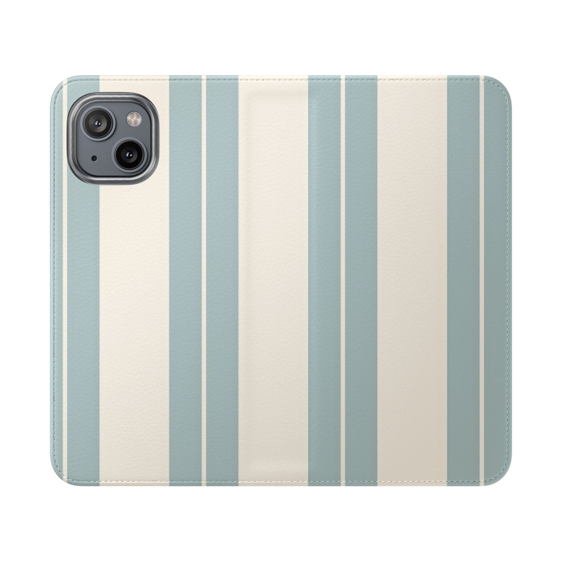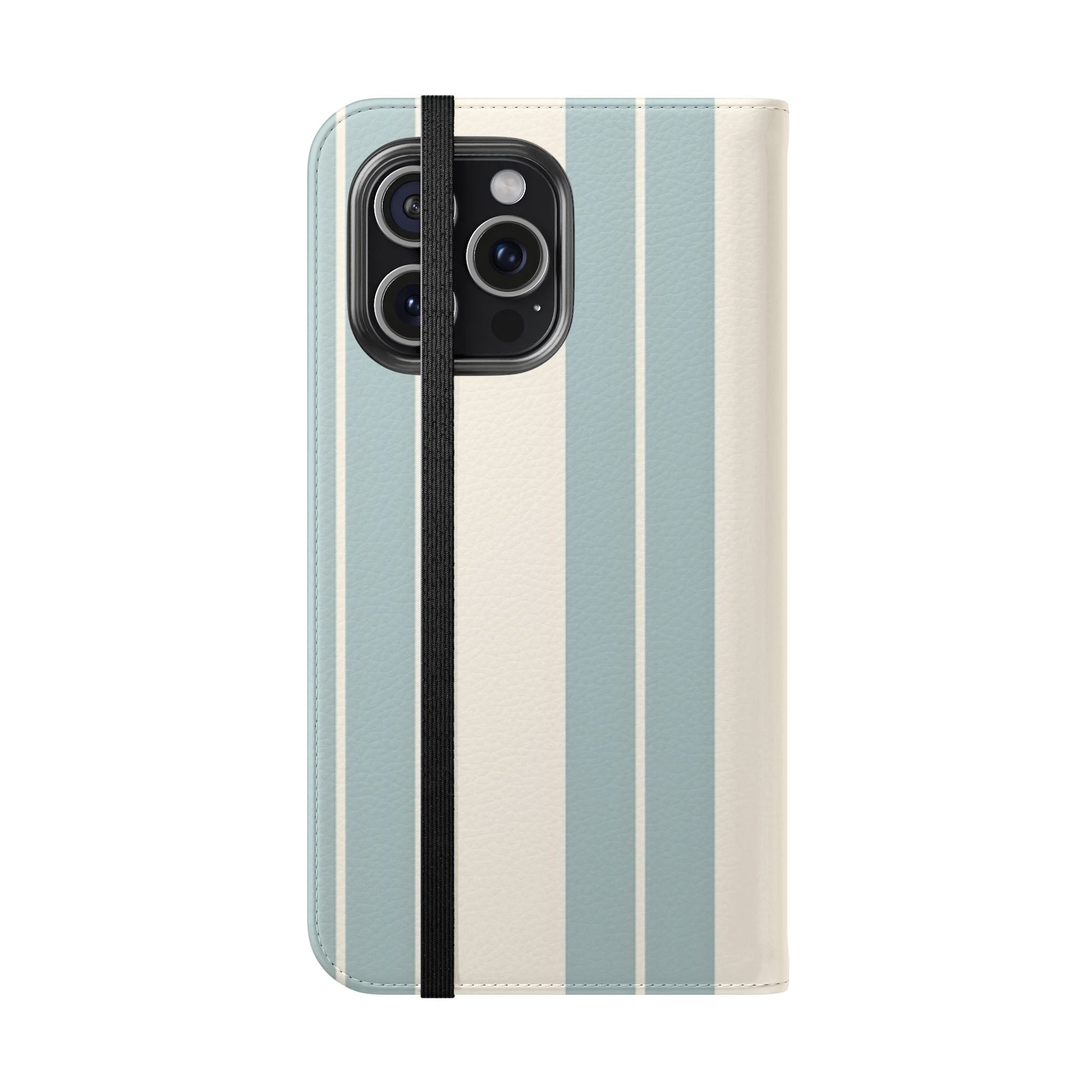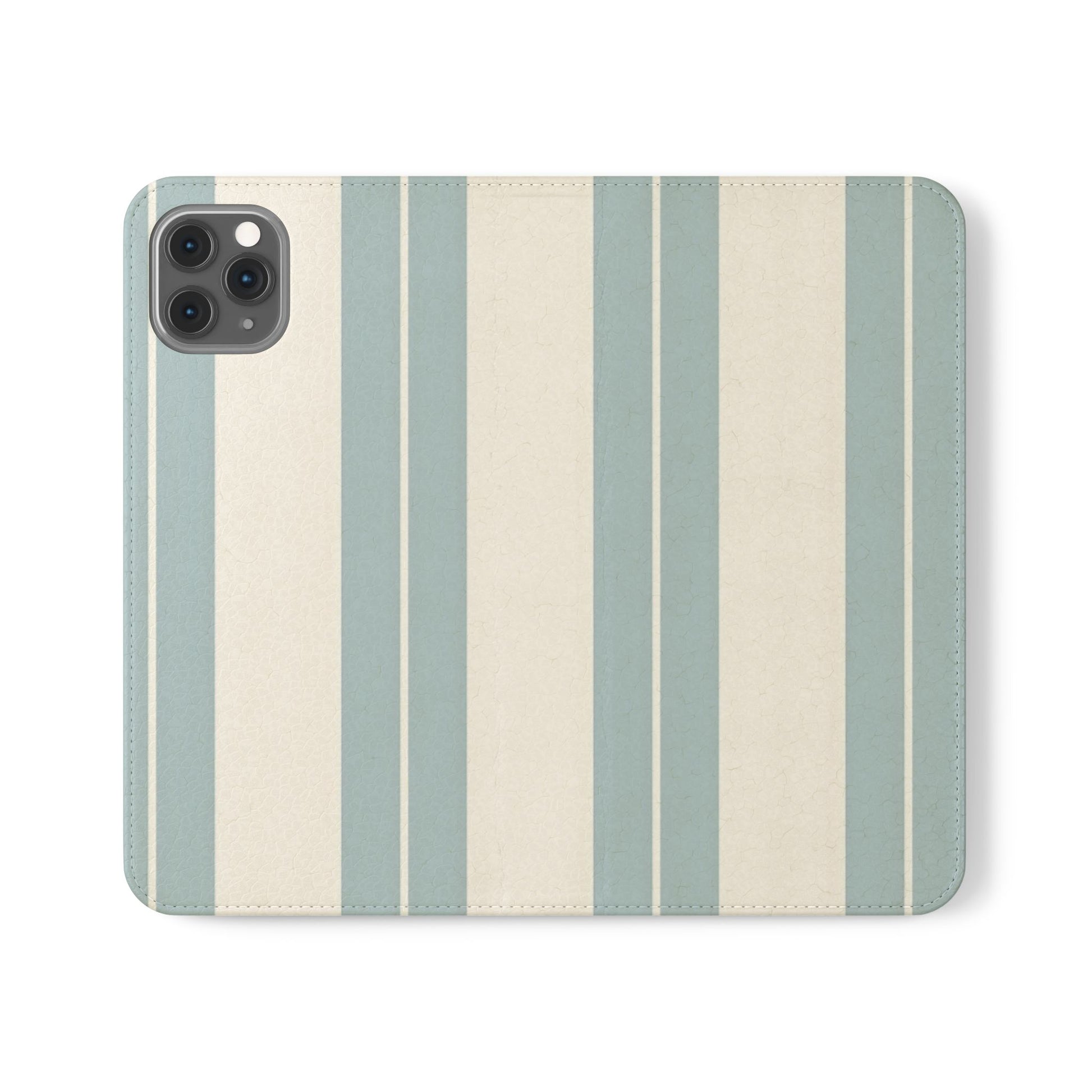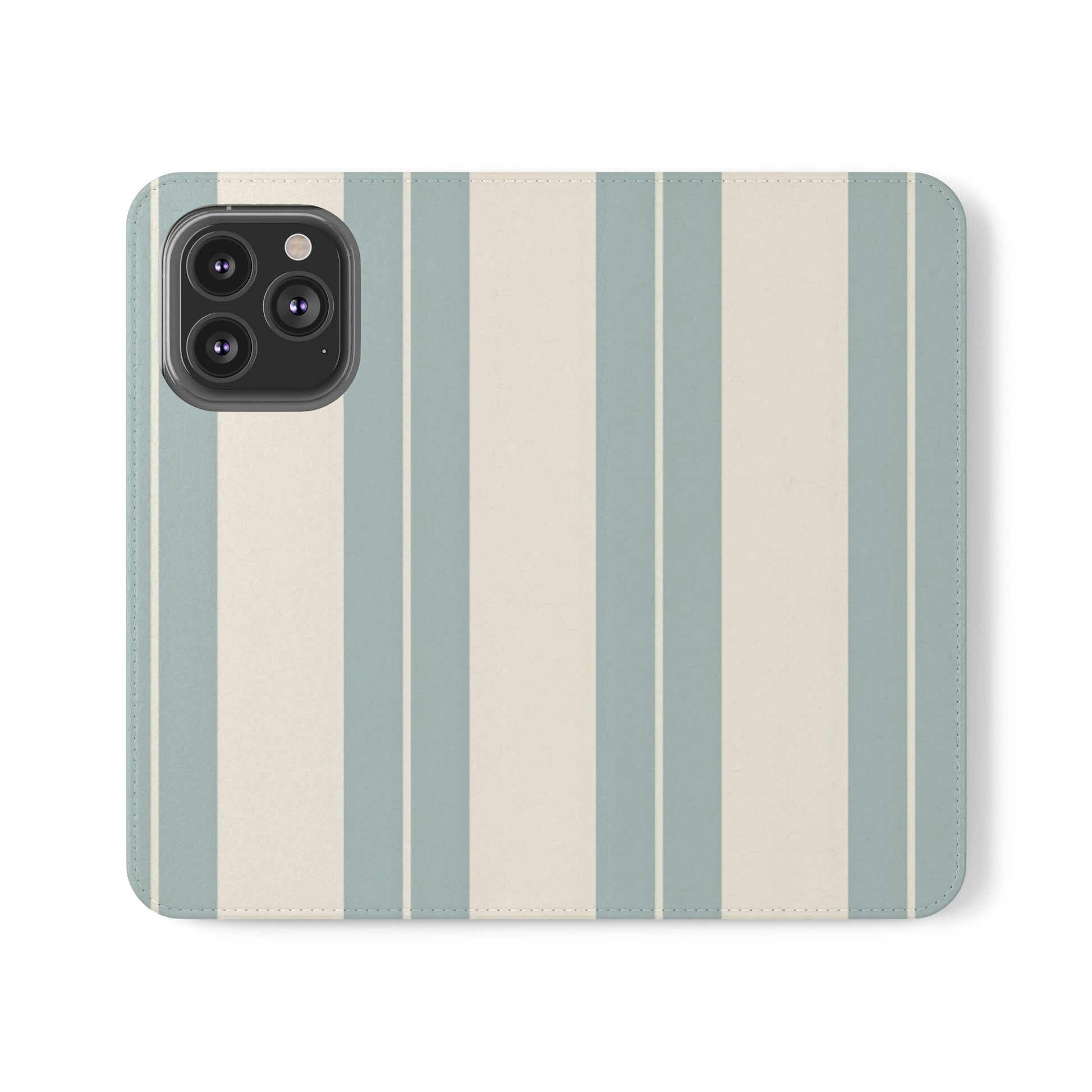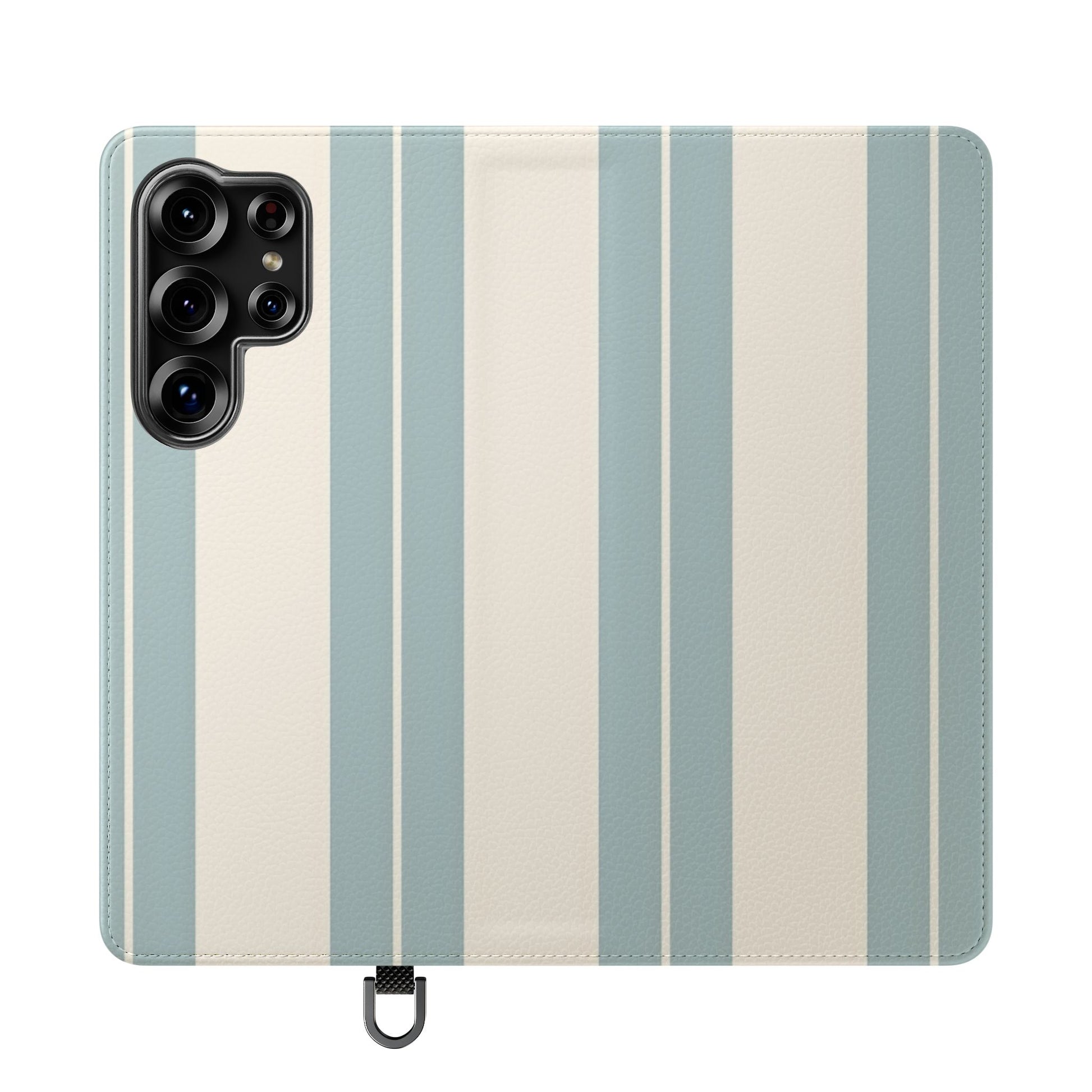 A calm, striped flip case that keeps your day organized and your phone protected without trying too hard. Coastal Stripe brings that soft blue-and-cream vibe, with card storage inside, a secure elastic closure, and a stand feature for hands-free scrolling.