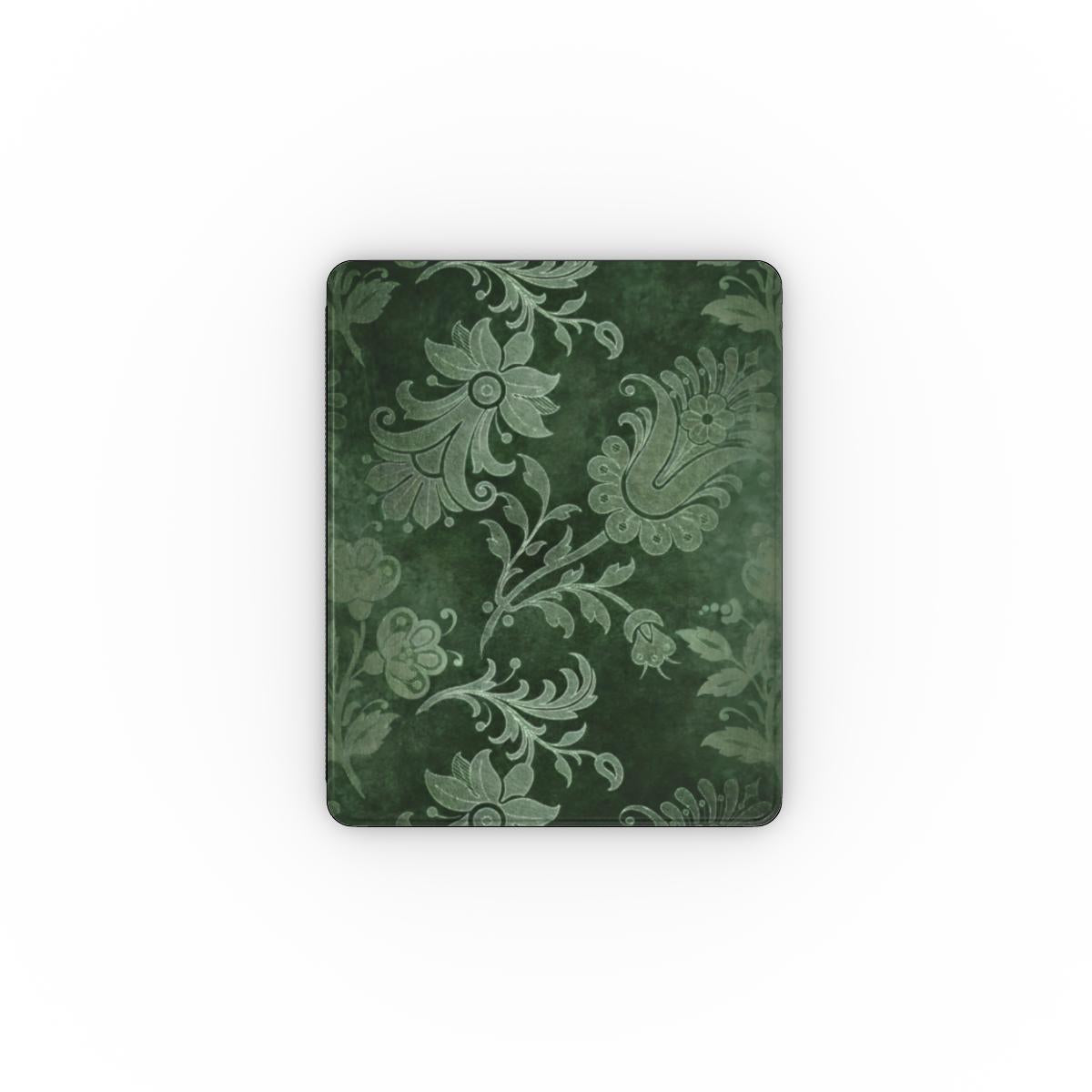 Quiet luxury for your workspace. This tablet case features the Forest Grace design—deep emerald with ornate botanical filigree in soft silver—so your setup feels refined without trying too hard. The slim build snaps on clean, the microfiber-lined interior helps prevent scratches, and the built-in stylus holder keeps your pen right where you need it.